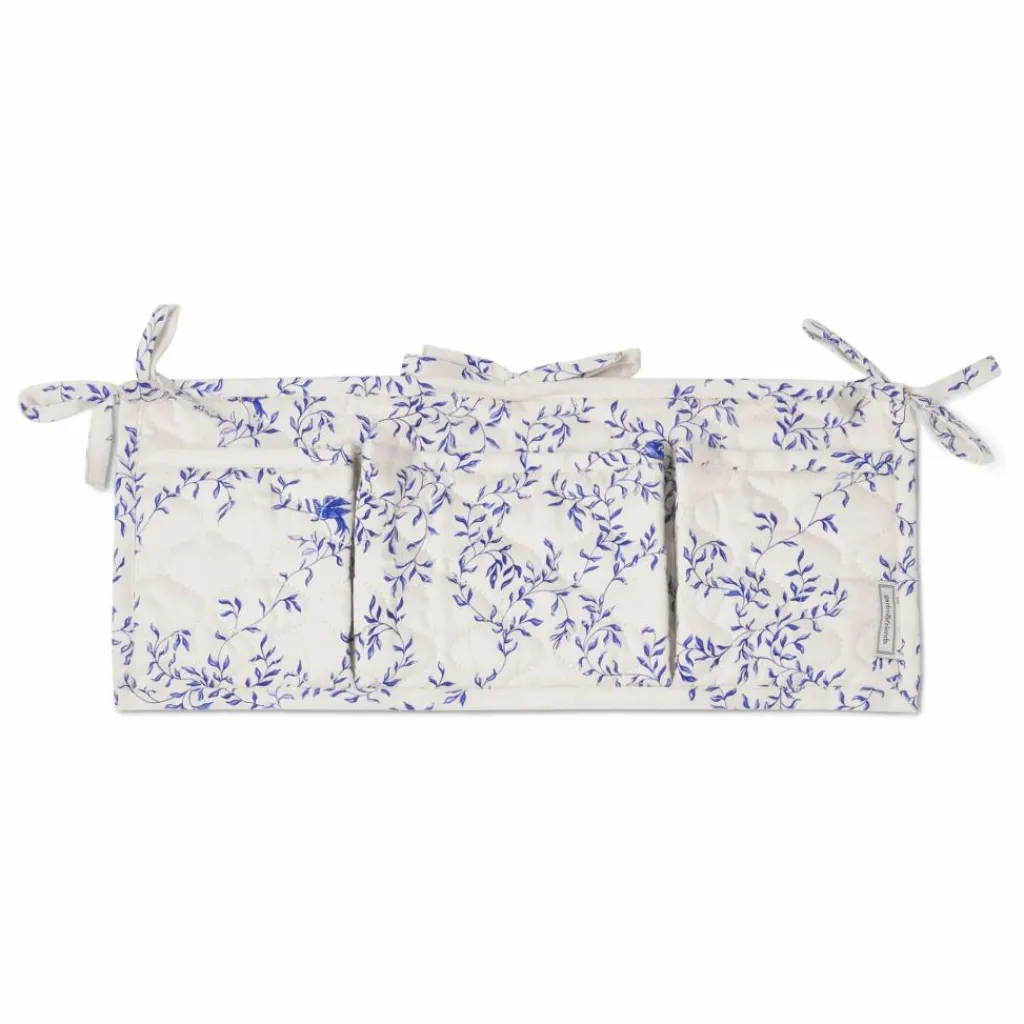 - Pochette matelassée à trois compartiments en satin de coton biologique. Parfaite pour être accrochée sur le côté du lit de bébé afin que les petits objets tels que les tétines, les hochets et les bavoirs soient toujours à portée de main.