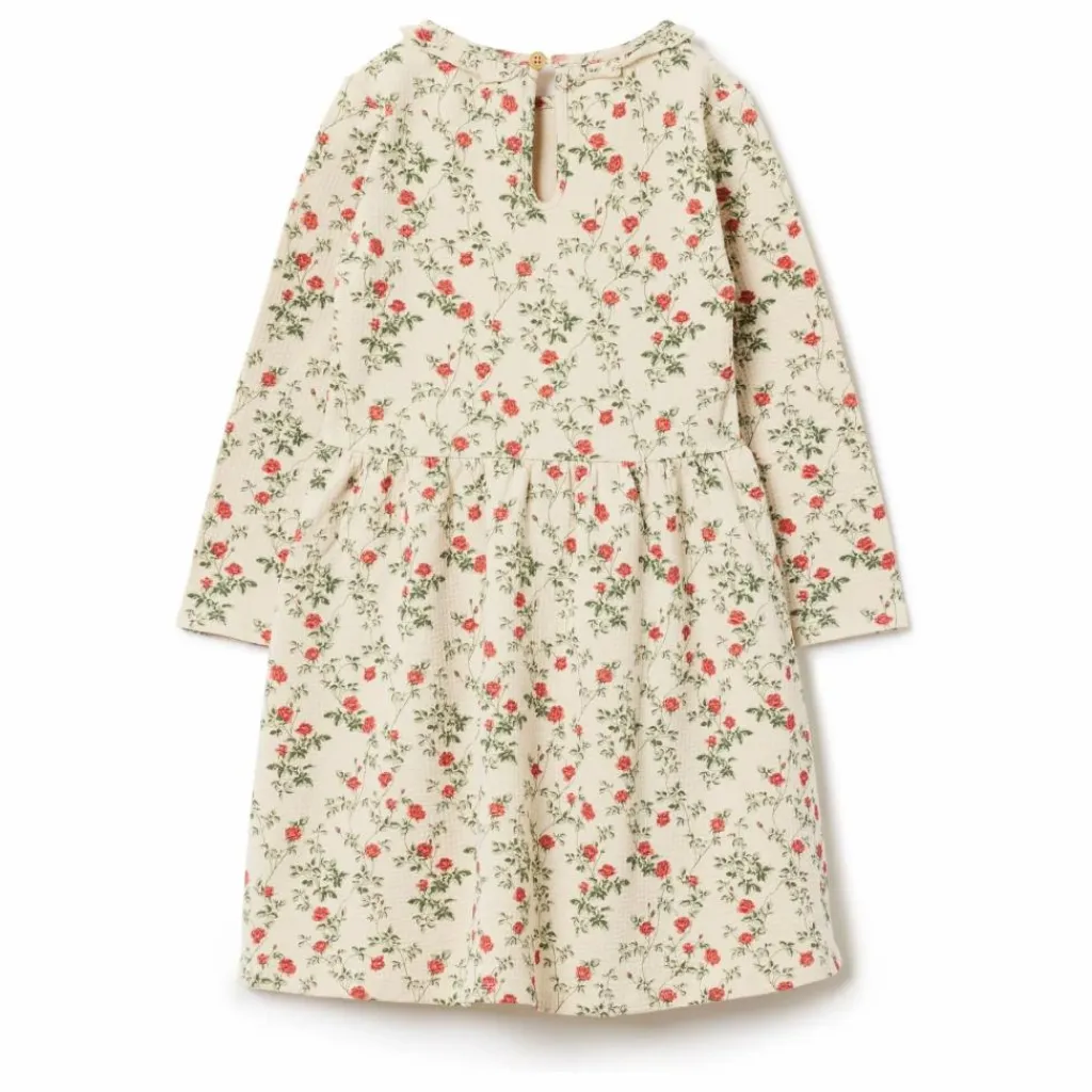 - Robe structurée en jersey de coton biologique doux. Elle présente des volants décoratifs à l’encolure, des manches longues et un boutonnage au dos.