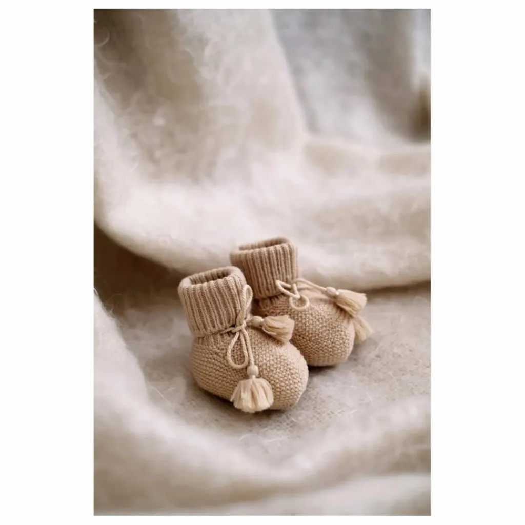 - Ces chaussons en tricot possèdent un lien de serrage très pratique pour faire tenir les chaussons sur les petits pieds des nouveaux nés. Les pompons sont réalisés à la main.