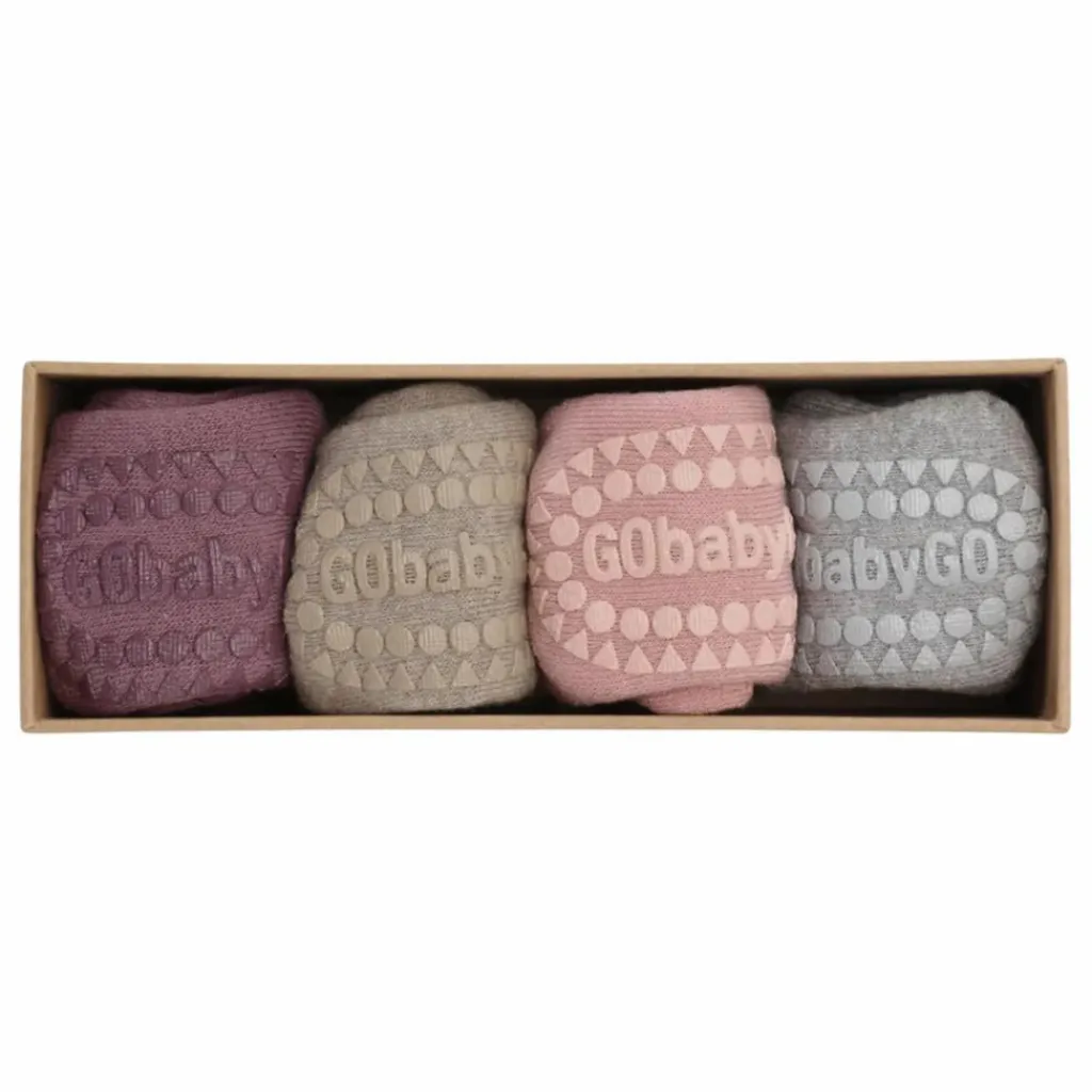 - Boîte de 4 chaussettes antidérapantes en coton éponge biologique. Les chaussettes antidérapantes sont dotées de semelles antidérapantes spécialement conçues et de coussinets en caoutchouc sur les orteils, ce qui les rend parfaites pour les bébés et les jeunes enfants qui aiment ramper, marcher et courir sans glisser. Ces chaussettes favorisent la motricité, l’équilibre et la confiance en soi de votre enfant. Fabriquées en coton épais, biologique et respirant, elles peuvent remplacer les pantoufles. Les chaussons à semelle dure peuvent entraver le développement des petits pieds. Nous recommandons donc d’utiliser des chaussettes antidérapantes pour permettre aux petits pieds de se développer et de grandir correctement.