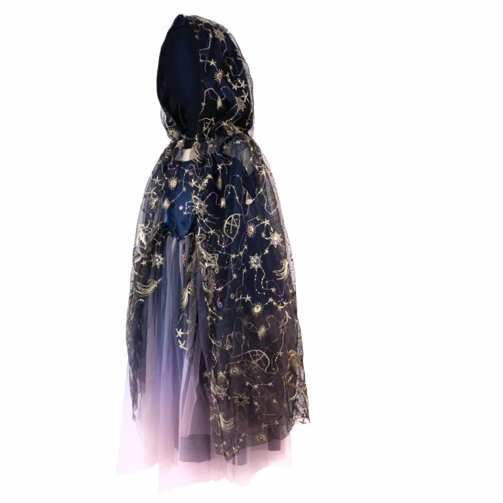 - Entrez dans la lumière des étoiles avec notre cape Twilight Enchantress – un accessoire céleste et féerique pour les petites rêveuses en quête de magie. Cette cape fluide est confectionnée dans un tissu violet foncé et transparent qui scintille comme le ciel nocturne. Des étoiles brodées et des constellations étincelantes ornent sa surface, créant un look enchanteur.