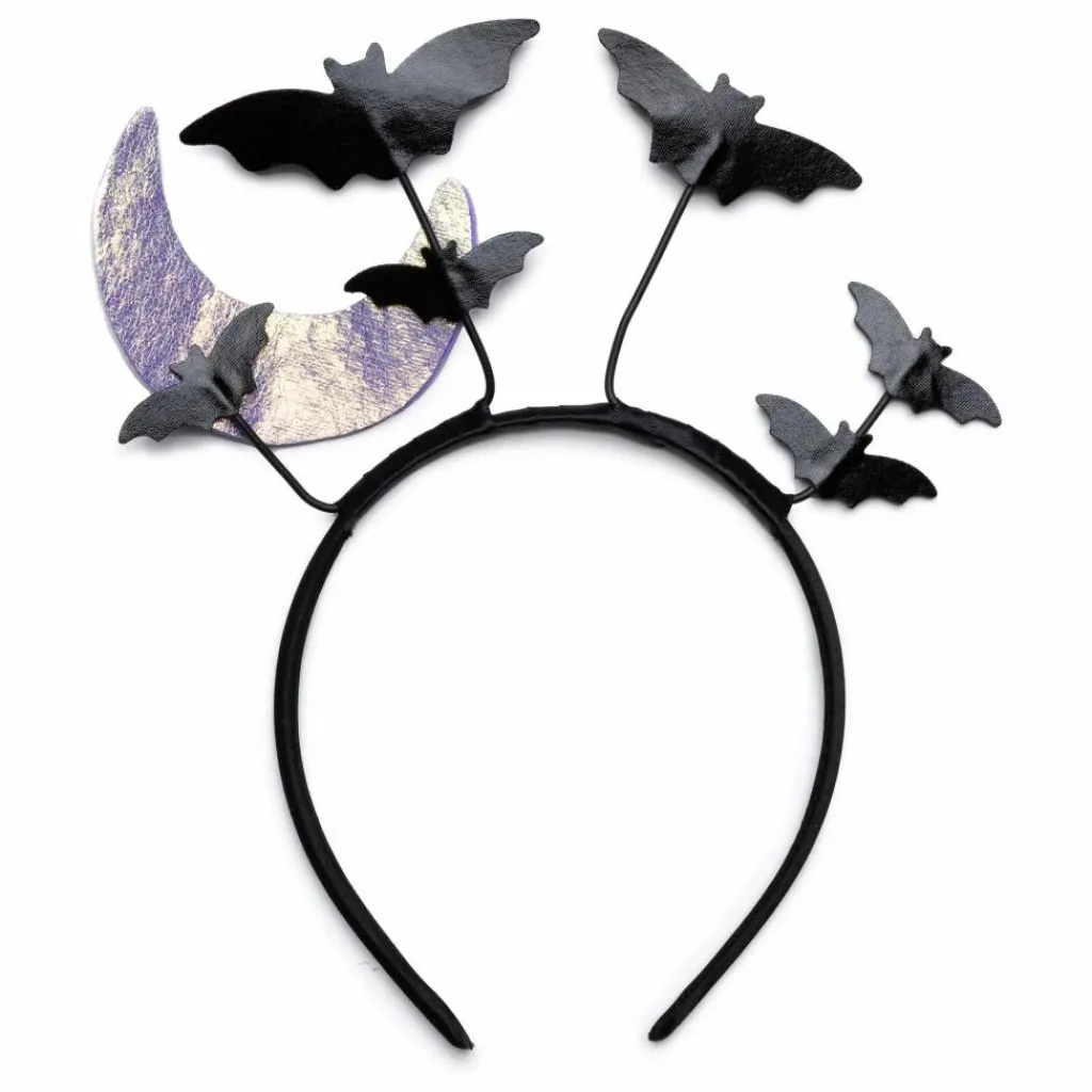 - Plongez dans l’ambiance d’Halloween avec notre serre-tête Bat-acular ! Orné de petites chauves-souris adorables se détachant sur un fond de lune lumineuse, ce serre-tête est parfait pour ajouter une touche de fantaisie effrayante à n’importe quelle tenue, c’est l’accessoire incontournable de la saison d’Halloween.