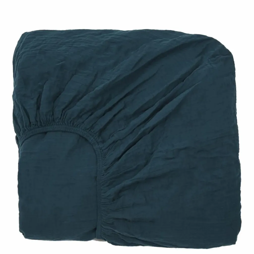Haomy Drap-housse Dili en voile de coton | Bleu de Prusse Clearance
