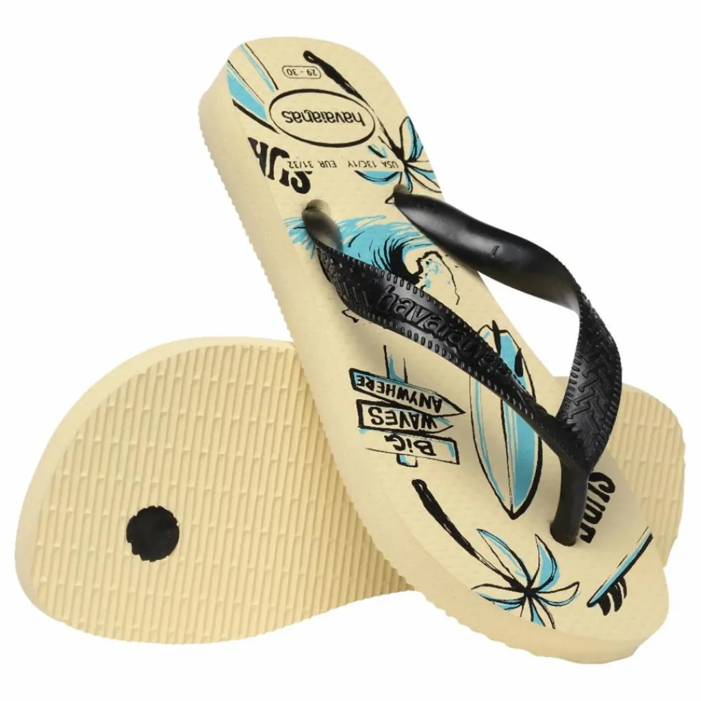 - Cette Havaianas est faite pour les enfants qui aiment le sport ! Les tongs ont l’univers du sport imprimé sur les semelles avec des motifs très détaillés pour les fans de basket-ball et de football.