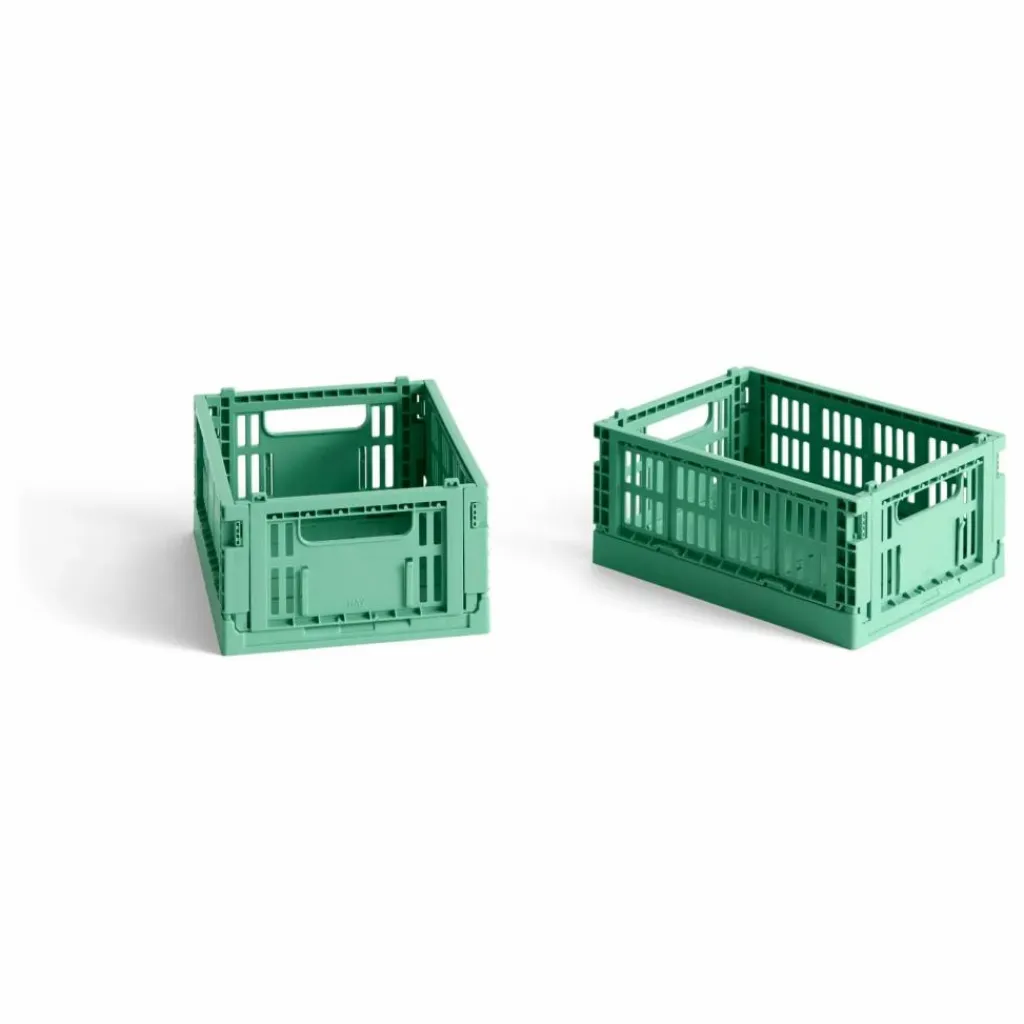 - HAY Colour Crate Mini est une série de boîtes de rangement colorées au design distinctif et perforé. Fabriquées à partir de déchets plastiques post-consommation 100 % recyclés, dans le plus petit format disponible dans la collection Colour Crate, les mini-caisses s’insèrent dans les grandes caisses et peuvent être empilées les unes sur les autres. Ces caisses multifonctionnelles conviennent au rangement et à l’organisation d’un large éventail de petits objets sur des étagères, des tables ou à l’intérieur d’armoires.