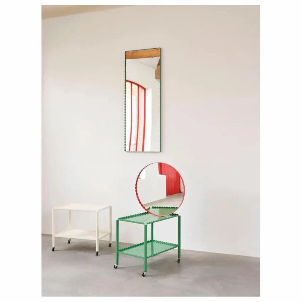 Les miroirs Arcs Mirror sont formés d’une chaîne unifiée d’arcs verticaux qui entourent le miroir pour créer un bord festonné élégant. Sa variété de tailles et de formes le rend adapté à toutes les pièces et à toutes les utilisations.