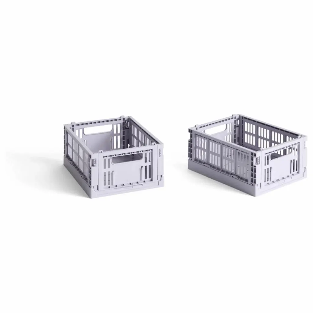 - HAY Colour Crate Mini est une série de boîtes de rangement colorées au design distinctif et perforé. Fabriquées à partir de déchets plastiques post-consommation 100 % recyclés, dans le plus petit format disponible dans la collection Colour Crate, les mini-caisses s’insèrent dans les grandes caisses et peuvent être empilées les unes sur les autres. Ces caisses multifonctionnelles conviennent au rangement et à l’organisation d’un large éventail de petits objets sur des étagères, des tables ou à l’intérieur d’armoires.
