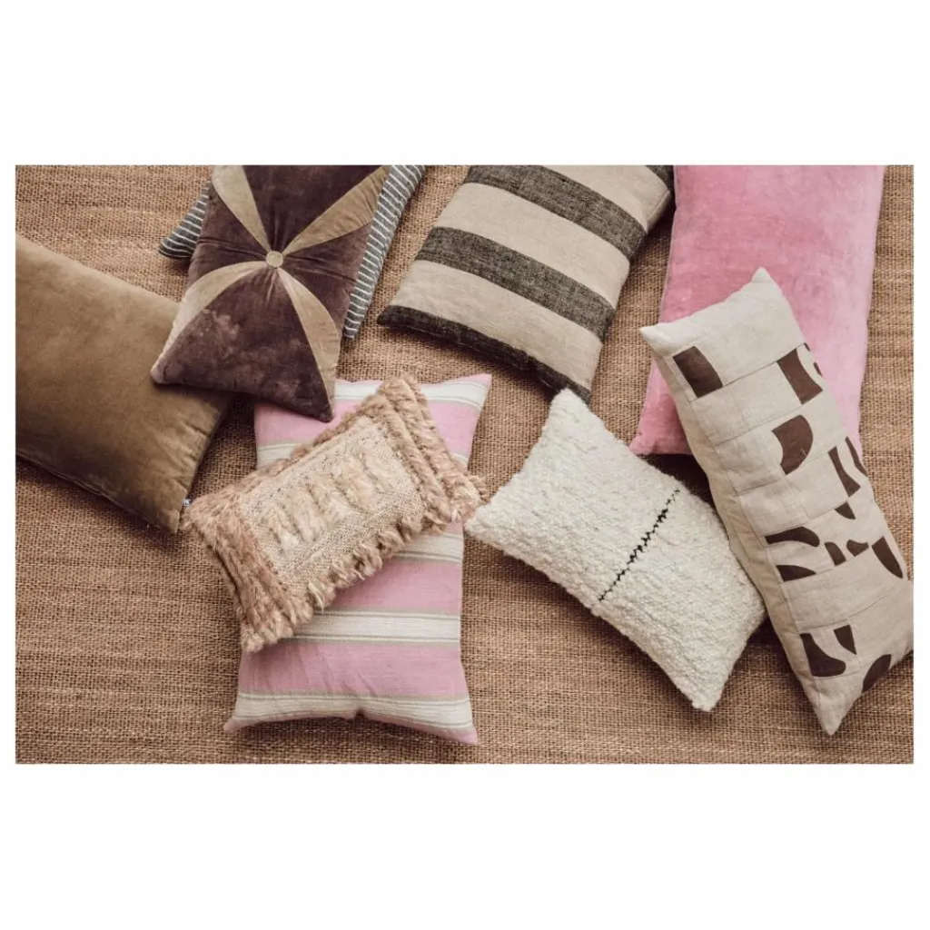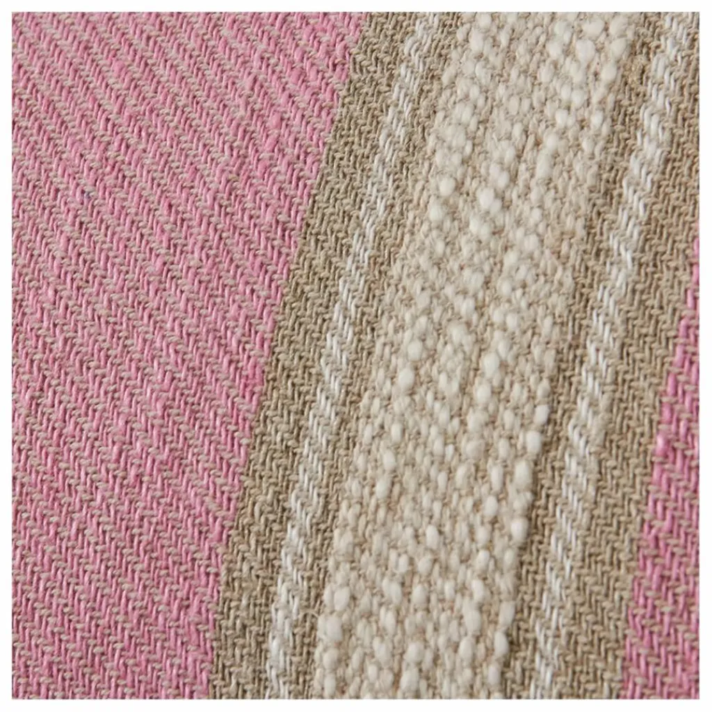 - Conçu pour faire contrepoids aux tons naturels de la collection, ce coussin tissé présente une douce rayure verticale dans des tons rose blush et crème. La palette de couleurs subtiles et le tissu tactile créent une esthétique sereine et accueillante. Parfait pour apporter une touche de chaleur raffinée, il s’intègre sans effort dans les intérieurs minimaux ou superposés.