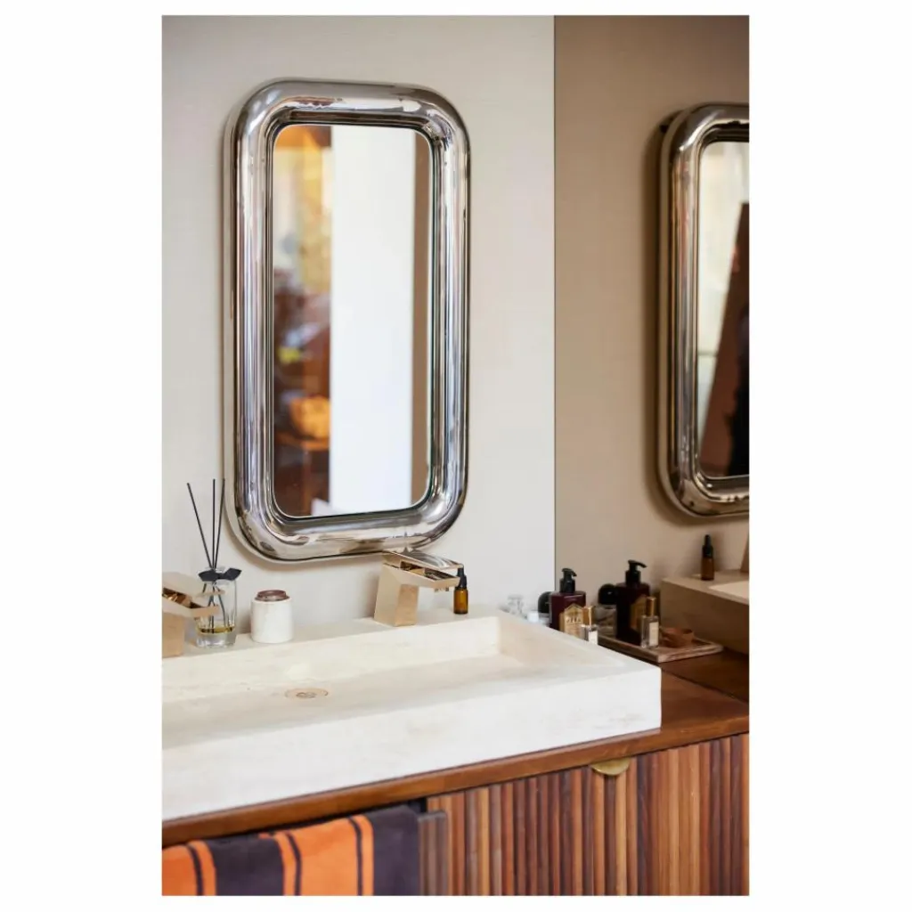Il n’y a rien de mal à être potelé ! Le cadre rond et potelé adoucit les matériaux durs et attire ainsi tous les regards sur le mur. Vous ne pourrez plus le quitter des yeux, mais c’est peut-être dû au reflet du miroir.