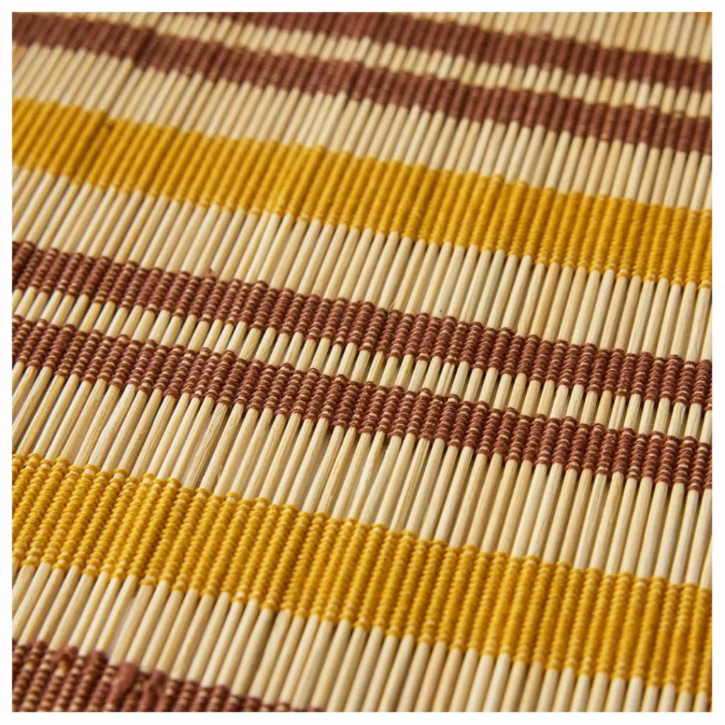 - Ce set de table en bambou allie la beauté des matériaux naturels à des couleurs et des motifs élégants. Son design à la fois subtil et saisissant ajoute une couche supplémentaire de texture à votre table, rehaussant l’expérience des repas d’une touche de chaleur et de raffinement.