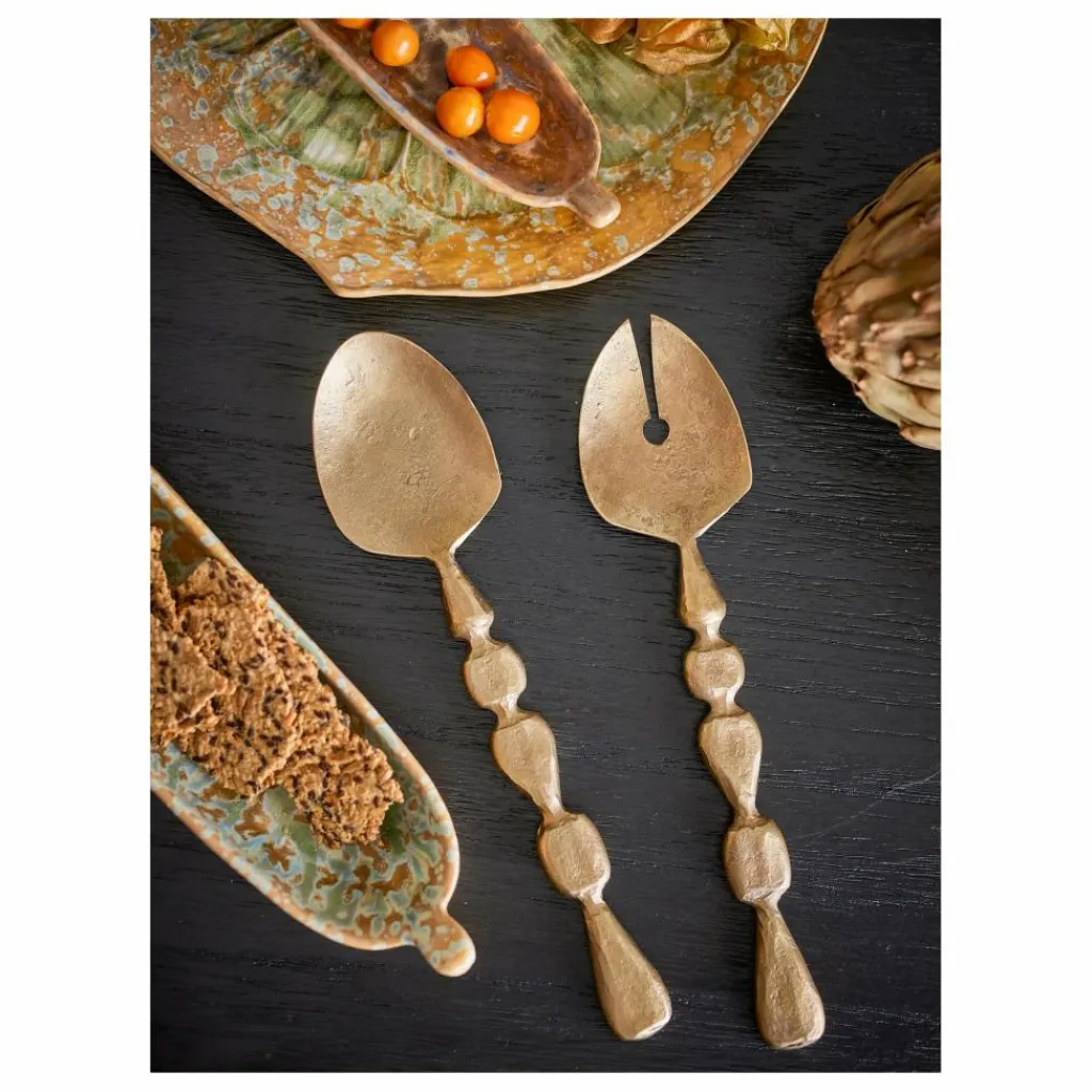 - Le Service à salade Edi de Bloomingville se compose d’une cuillère et d’une fourchette en métal couleur laiton avec une forme organique. Les poignées décoratives ajoutent du caractère à toute table. Utilisez-les pour les salades, les plats de pâtes ou comme éléments décoratifs sur une étagère ouverte.