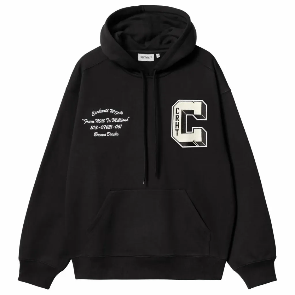 Le sweat-shirt à capuche ‘Brown Ducks’ est confectionné en jersey de polyester-coton épais qui a été brossé pour un rendu molletonné. De coupe balloon, légèrement plus ample et boxy, il présente des emmanchures basses et des extrémités côtelées. Il affiche une broderie graphique et un patch du logo.