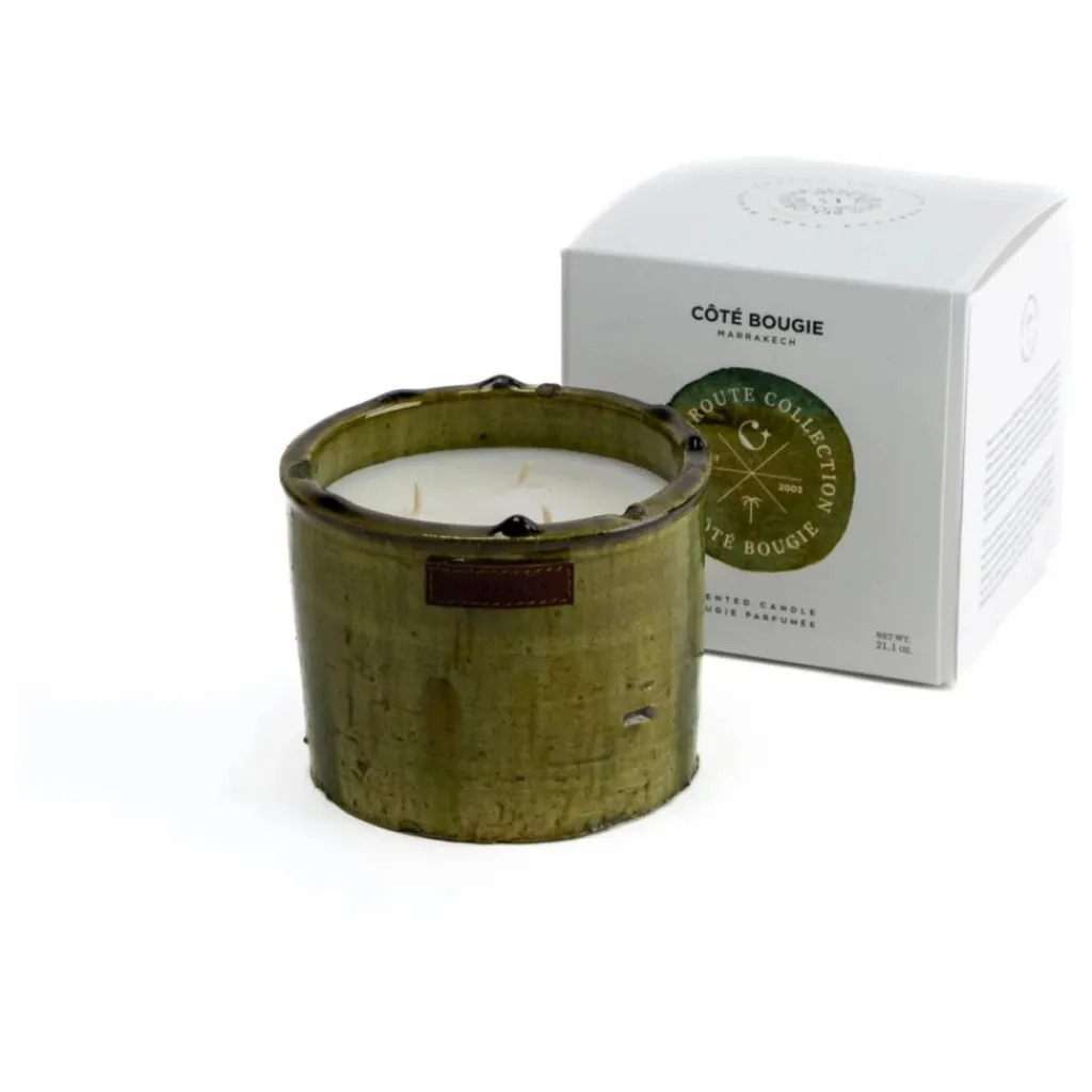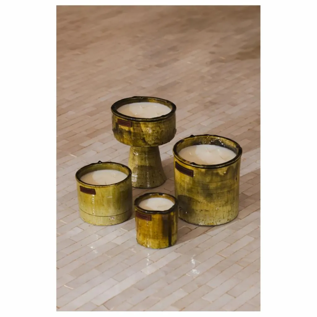 - La Bougie parfumée Tamegroute Jaune est une célébration de l’art ancestral de la poterie du sud marocain.