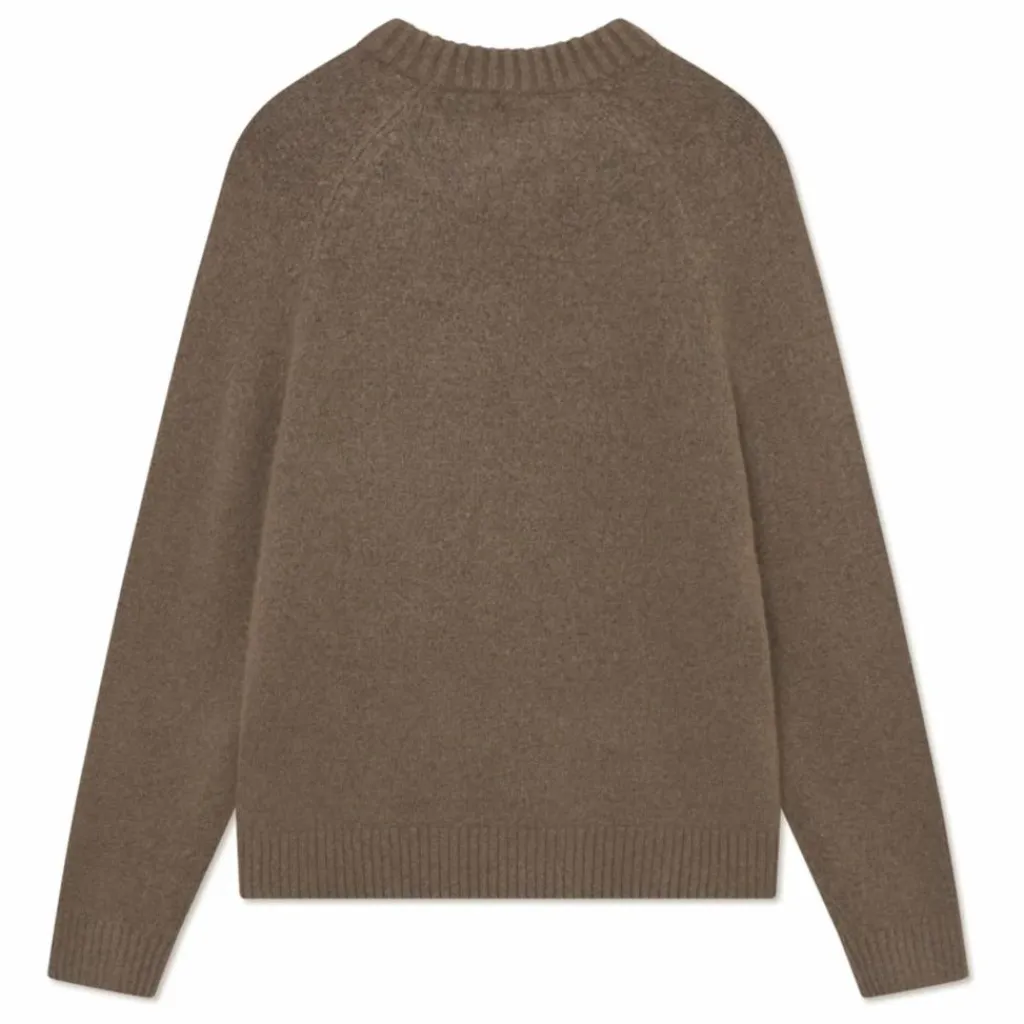 - Texture brossée et duveteuse Col en O à forte épaisseur Ourlet, poignets et encolure côtelés Fil mélangé saisonnier