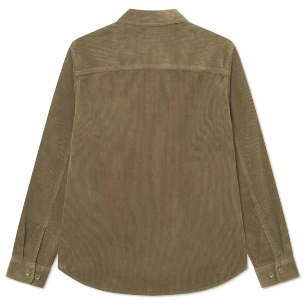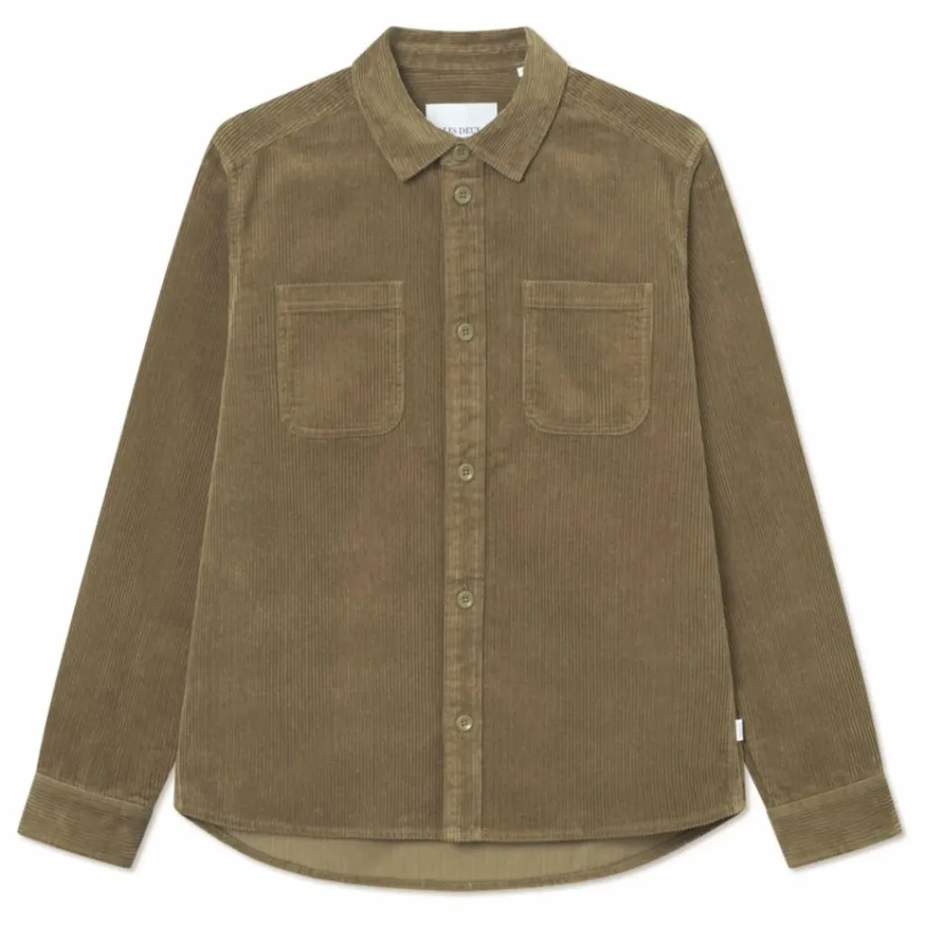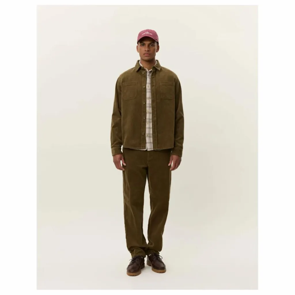 - Surchemise en velours côtelé de coton épais 8 fils avec poches à rabat sur la poitrine et boutons d’aspect osseux