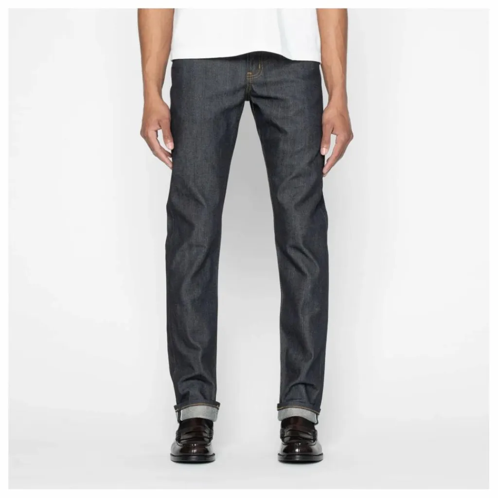 - Le Weird Guy est notre coupe fuselée standard, confortable de la taille à la hanche et fuselée du genou à l’ourlet. Fabriqué à partir d’un denim japonais de 13,75 oz teint à la corde à l’indigo, tissé sur des métiers à tisser à navette d’époque en sergé main gauche. La chaîne teintée indigo et la trame blanche, combinées à une lisière à rayures blanches, confèrent à ce jean un aspect classique. La construction en sergé main gauche donne un denim plus doux au toucher lorsqu’il est porté au fil du temps et met en valeur la décoloration verticale.