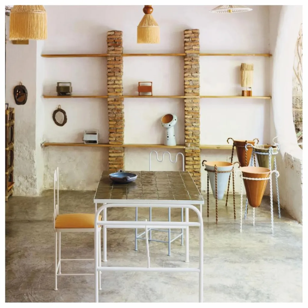 - La table basse Dolores donne un air de fête à votre intérieur (et extérieur) avec ses courbes festonnées. Le plateau, composé de briquettes de terre cuite, se marie parfaitement avec une ambiance chic et festive
