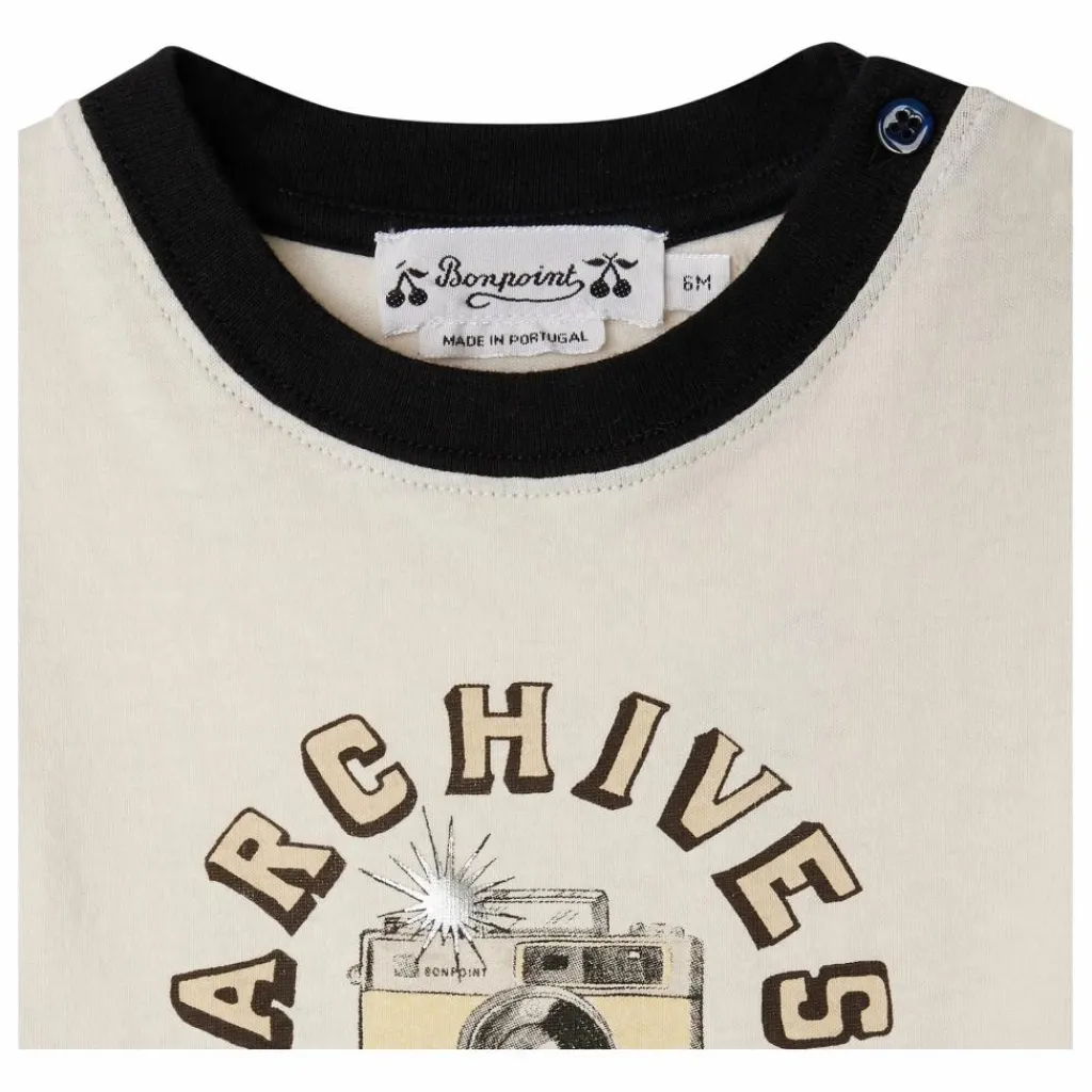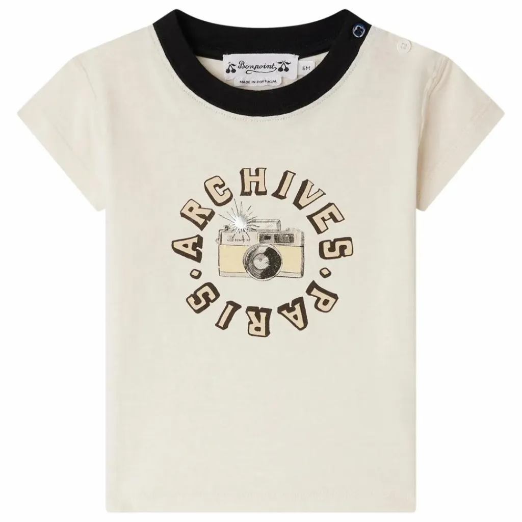 - Ce t-shirt Tom pour bébé se démarque par son col rond contrastant et son imprimé Archives Paris sur le devant. Confectionné en coton biologique, il s’enfile facilement grâce à son épaule boutonnée.Coton biologique non teintCoupe droiteManches courtes