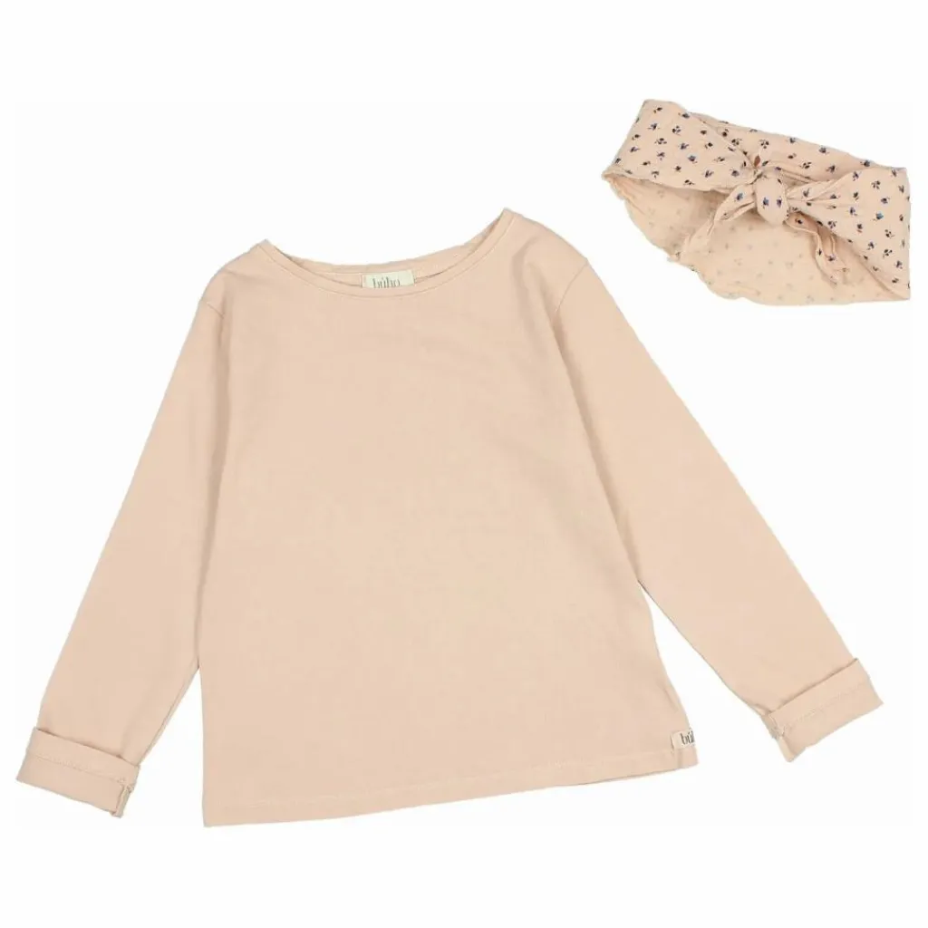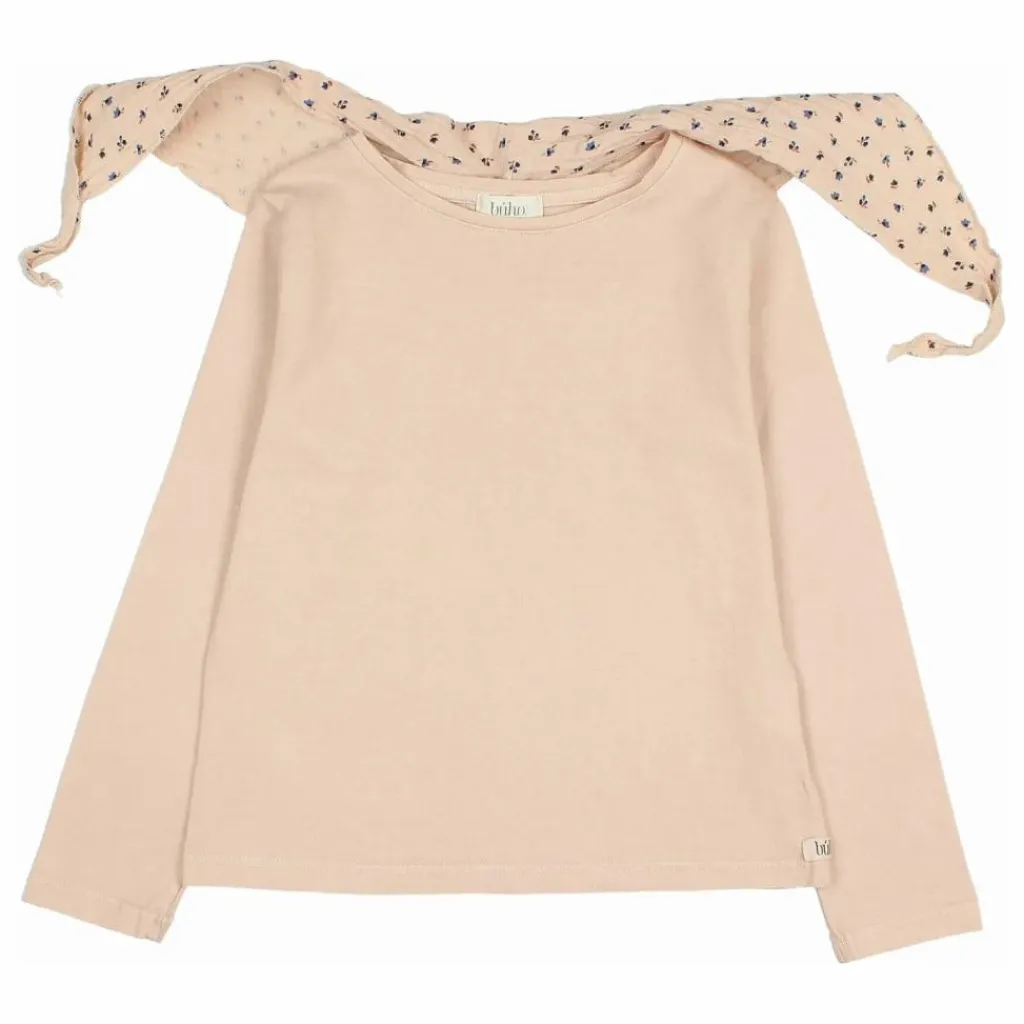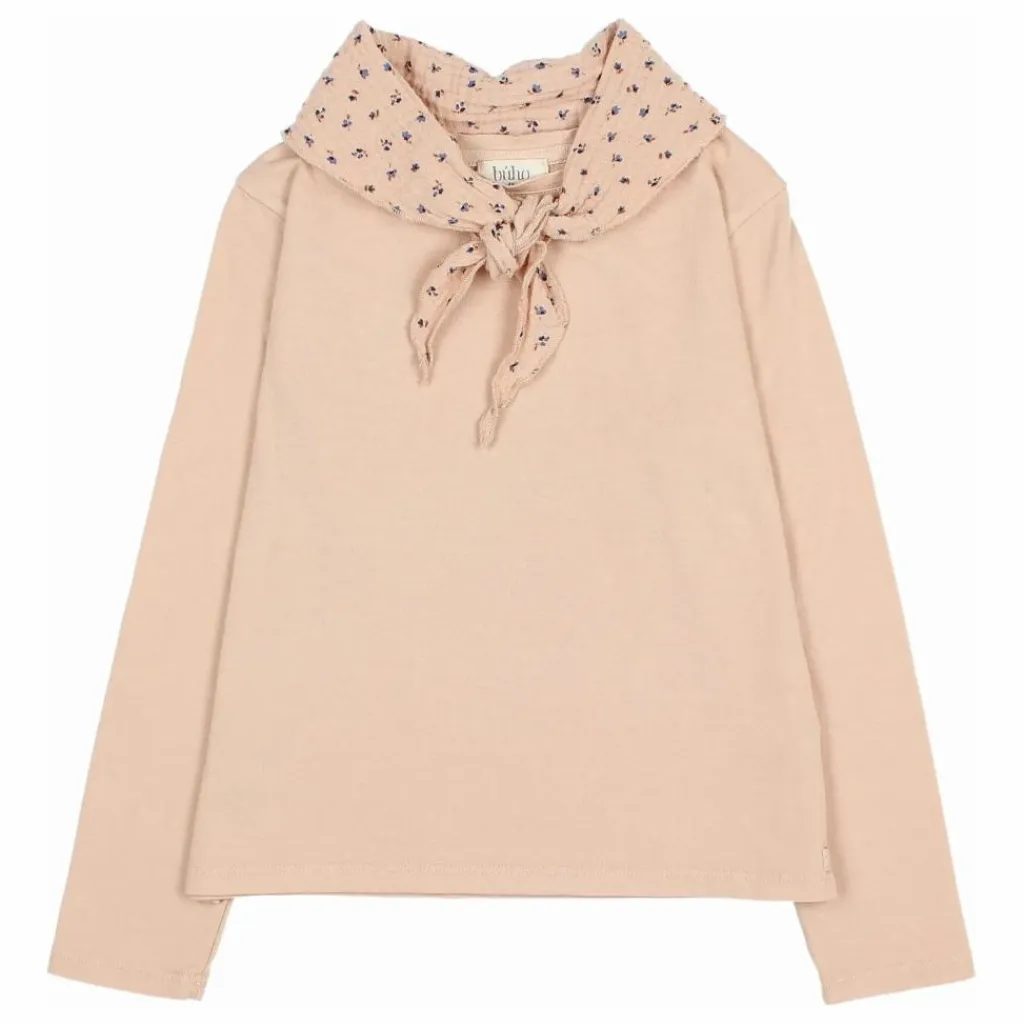 - T-shirt à manches longues avec écharpe en mousseline imprimée « fall ». Col rond. Foulard fermé par un bouton au dos.