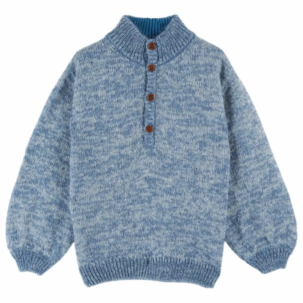 - Pull-over en laine de mouton mélangée blanches et bleues.