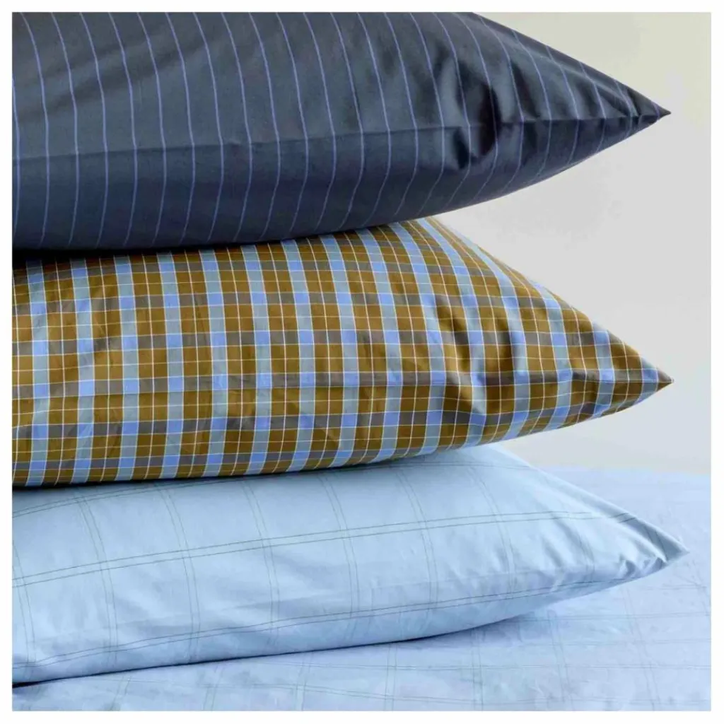 - Apportez du graphisme dans votre décoration de chambre avec la taie d’oreiller Chloé Ciel. Son motif à gros carreaux fins, tracé sur un fond bleu ciel lumineux, joue l’équilibre parfait entre sobriété contemporaine et charme rétro. Confectionnée en percale de coton 100% biologique, au tissage serré de 80 fils/cm², elle vous offre une sensation de fraîcheur et de confort nuit après nuit. Son tissu respirant et résistant garantit une grande longévité, même après de nombreux lavages en machine. Fabriquée avec soin dans des ateliers certifiés au Portugal, en circuit court, elle incarne un choix responsable, qui valorise le savoir-faire local tout en réduisant l’impact environnemental. À assortir à la housse de couette du même motif ou à dépareiller avec nos autres coloris pour créer une parure unique.