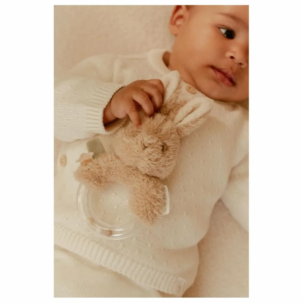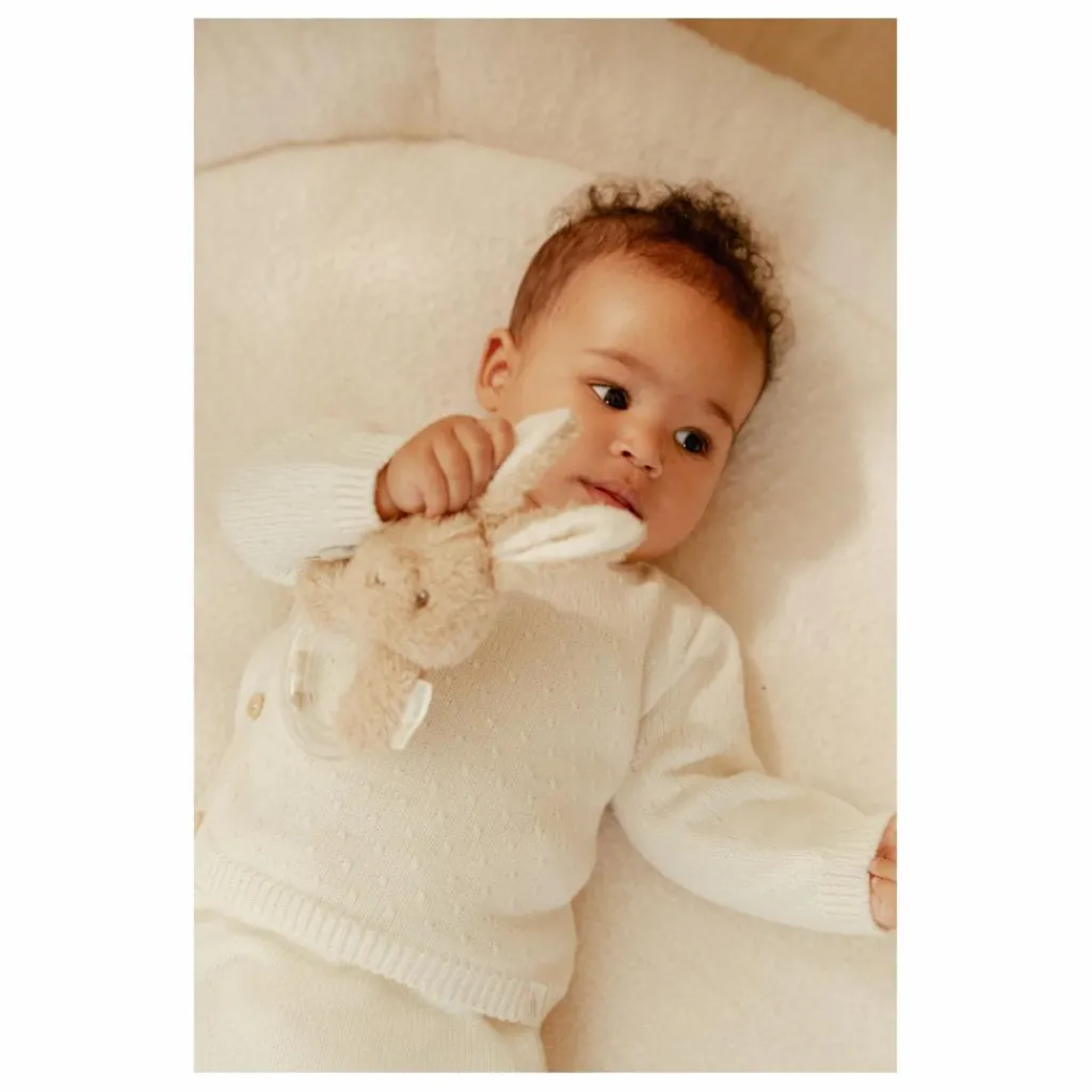 - Une première découverte pour les petites mains. Le hochet à anneaux est parfait pour saisir, secouer et explorer. Le son doux du hochet stimule les sens, tandis que les différentes textures favorisent le développement tactile. Léger et facile à tenir, il est idéal pour les bébés curieux, désireux d’explorer le monde pas à pas. Un premier jouet adorable qui suscite l’émerveillement et le plaisir de jouer !