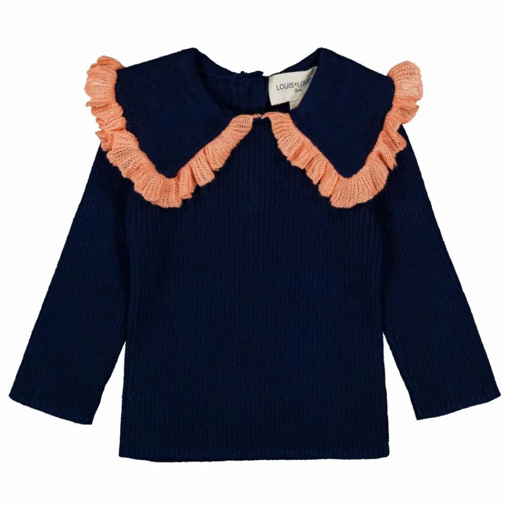 Détails : Manches longues, maille côtelée, col claudine volanté, patte de boutonnage au dos. Lavage en machine conformément aux instructions sur l’étiquette.