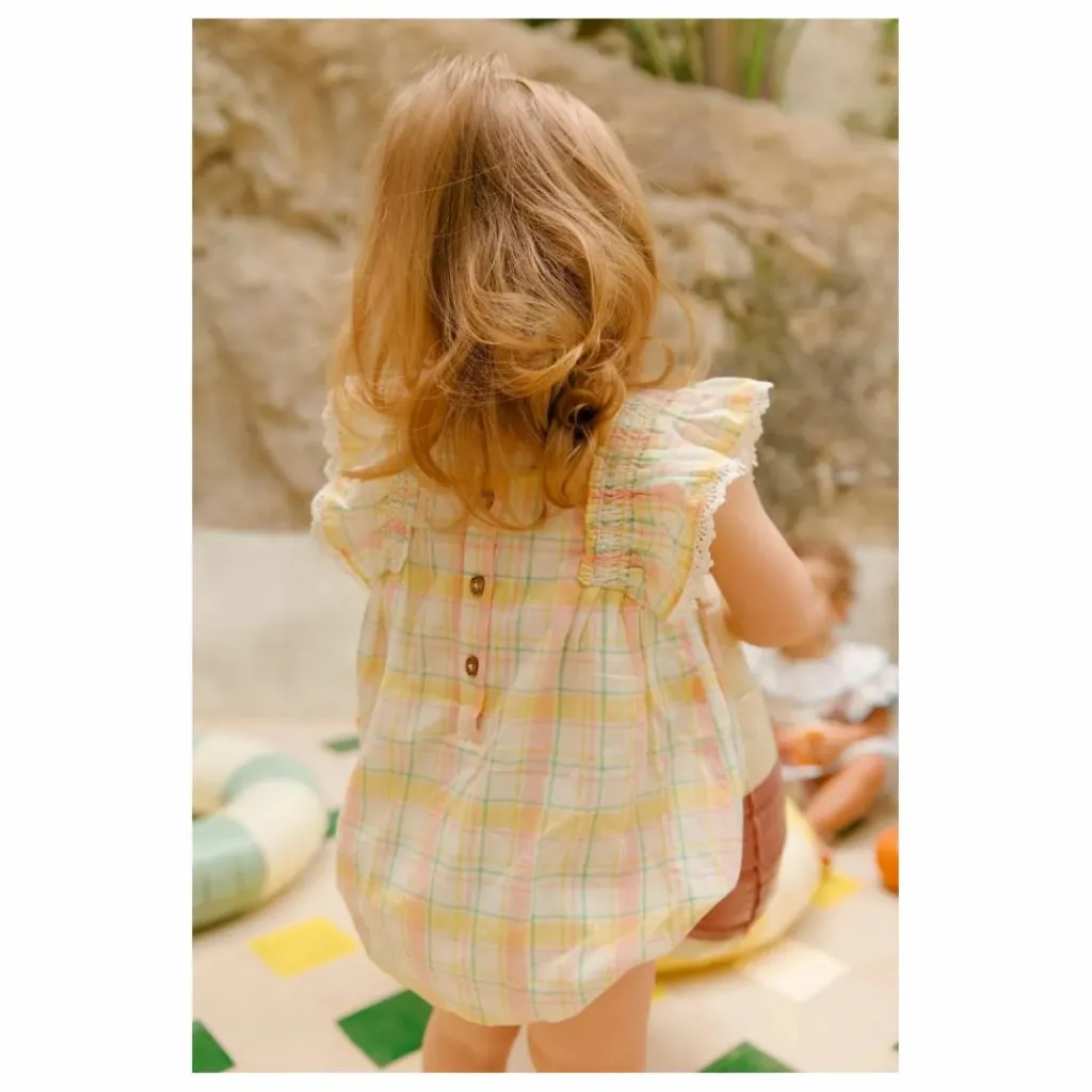 Barboteuse à carreaux en tissé teint.