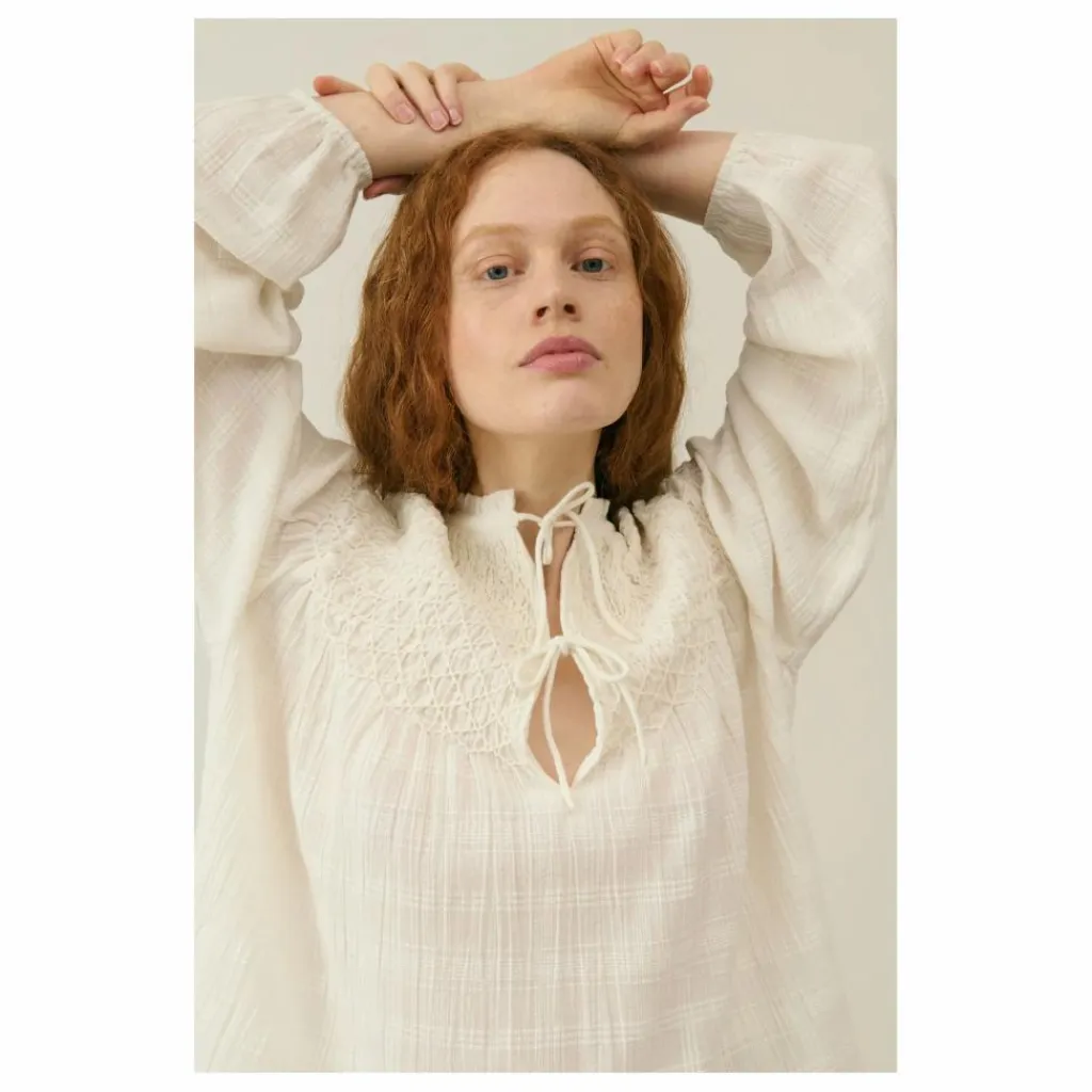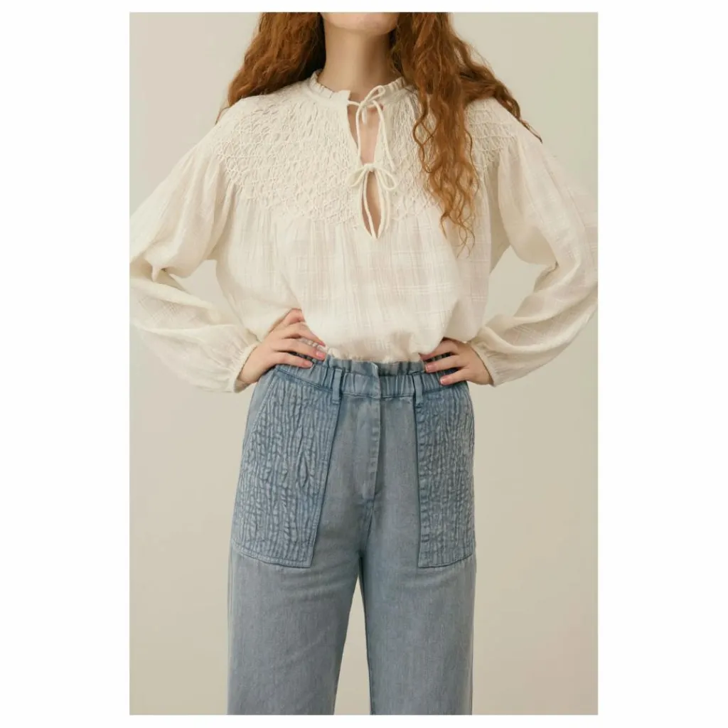 Manches longues bouffantes et poignets élastiqués.Cette pièce a été imaginée par Marie Pidancet et son équipe passionnée.