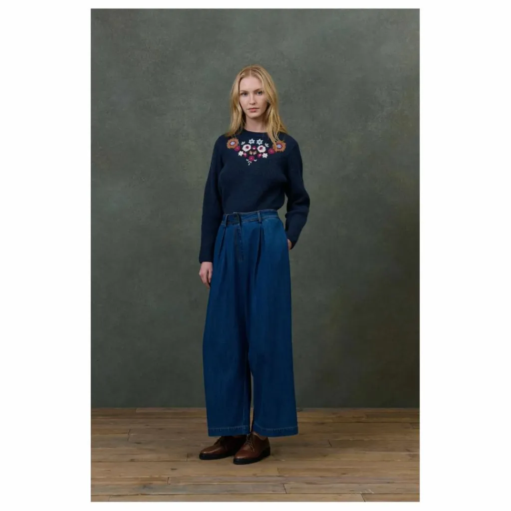Bande de détails ajourés en V sous les broderies, sur les manches et dans le dos.Pièce imaginée à Paris par Marie Pidancet et son équipe.