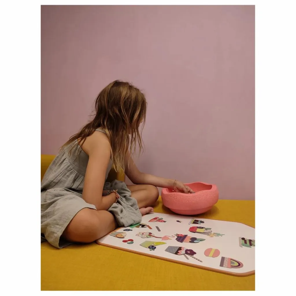 Ajoutez un aimant par-ci, un aimant par-là… et laissez l’imagination des enfants créer les cupcakes les plus gourmands et originaux. Un jeu délicieux à consommer sans modération et avec beaucoup d’amour !