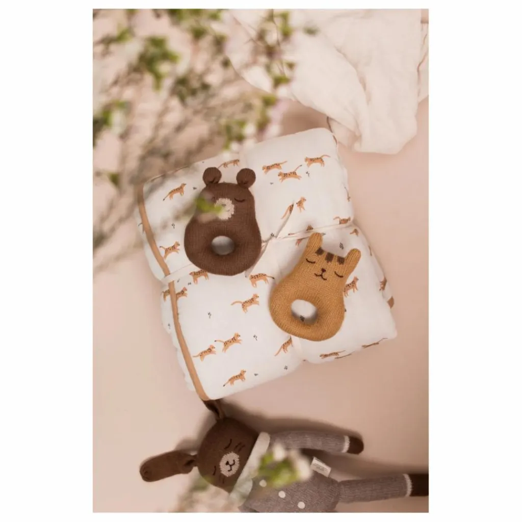 Entièrement tricoté à la main, ce hochet est le cadeau idéal pour une naissance. Sa confection minutieuse participe à préserver des savoir-faire et des techniques respectueuses des humains et de la nature. Il est réalisé en pure laine baby alpaga, une matière anti-bactérienne très douce, particulièrement adaptée aux peaux sensibles.