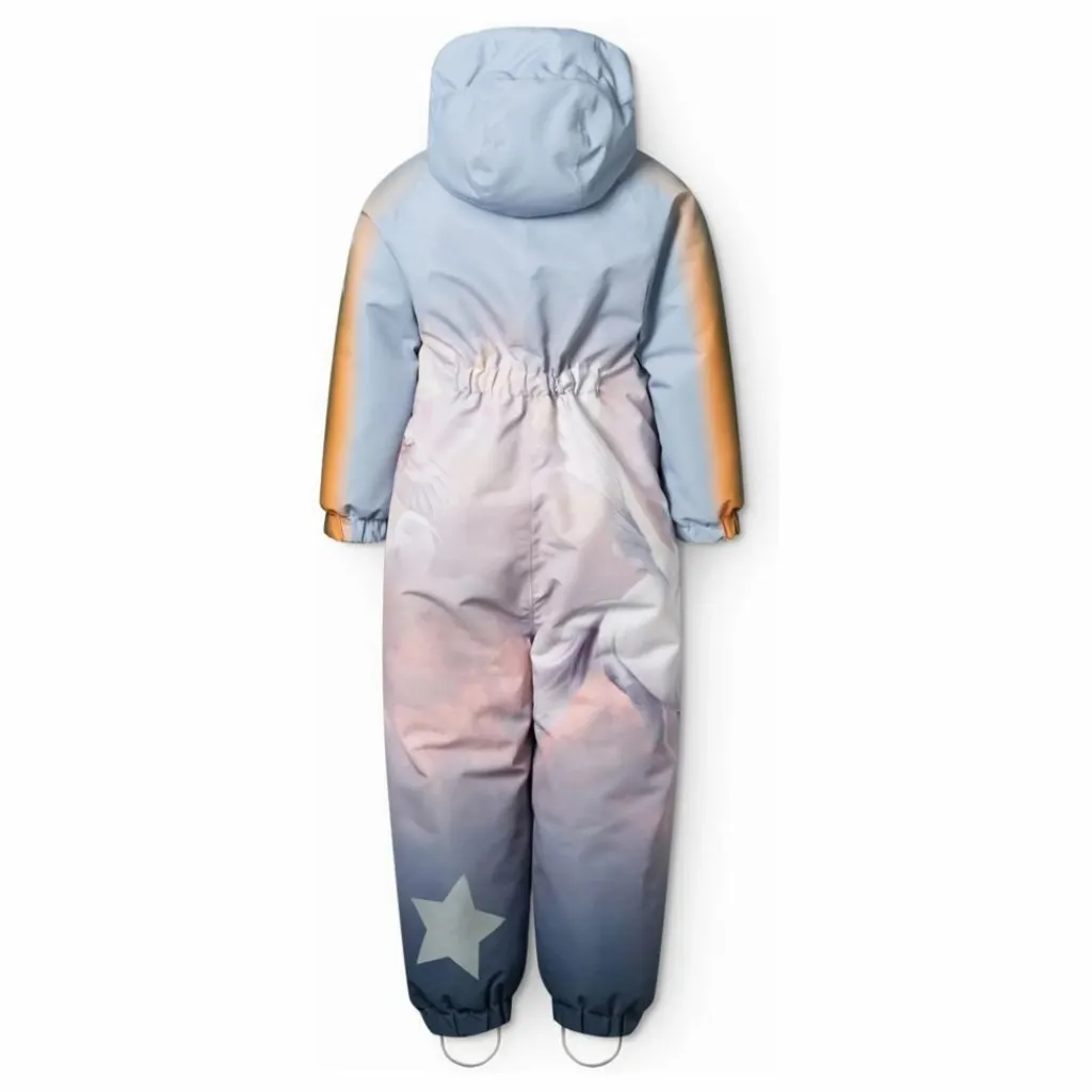 - Cette combinaison de neige déperlante de couleur pastel de Molo est fabriquée en polyester recyclé et présente un imprimé de pégase blanc. Elle est dotée de poches zippées, d’une capuche doublée amovible avec rabat coupe-vent et d’une longue fermeture à glissière sur le devant pour faciliter l’habillage. Les poignets élastiques des manches et des jambes empêchent la neige, la pluie et le vent de pénétrer, tout en garantissant que les moufles et les bottes restent en place. La combinaison comprend également un réflecteur d’étoiles sur la jambe et un élastique de taille réglable en interne pour un ajustement confortable.