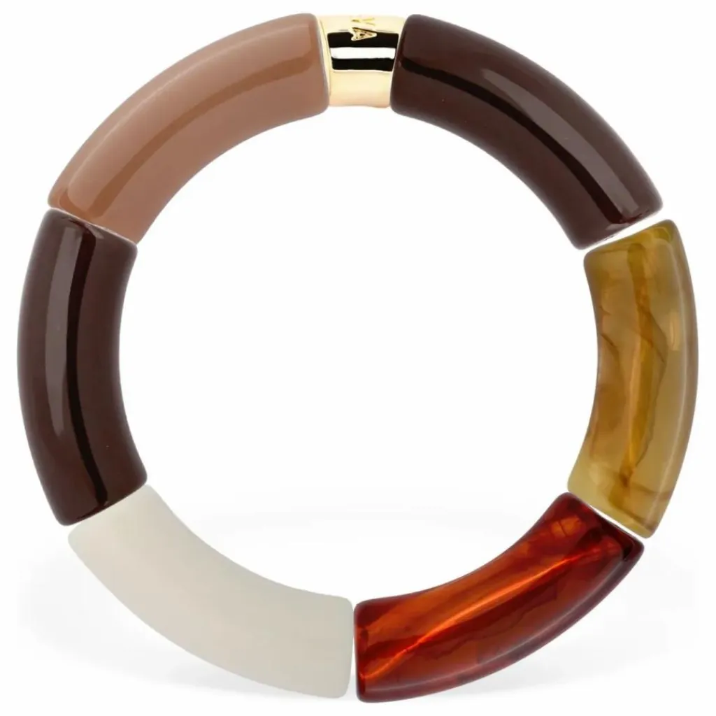 - Bracelet composé de perles acryliques ou résine et d’une perle en acier au logo de la marque PARABAYA