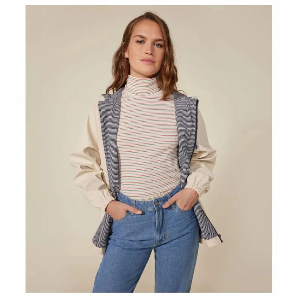 - Bas de manche élastiqué.Fermeture zippée sur le devant.En maille enduite qui protège de la pluie, avec une doublure en coton milleraies douce et confortable.