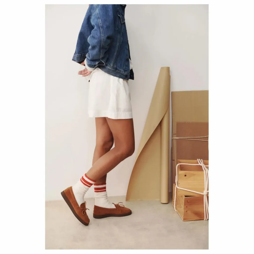 - Un mocassin indien réinterprété avec caractère. Ses jeux de piqûres et sa tresse de cuir lui confèrent tout son charme. Monté sur une semelle très souple en gomme, il offre le confort d’un chausson.