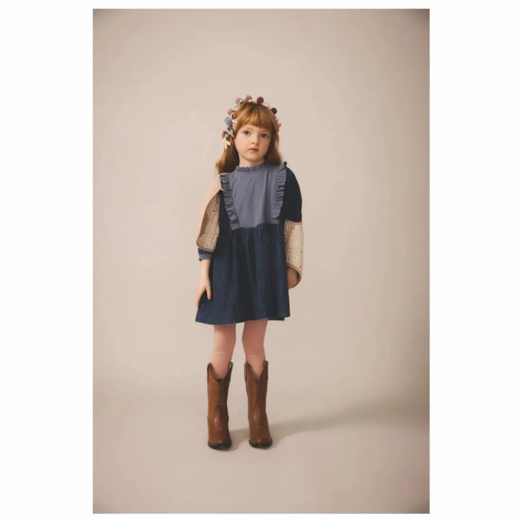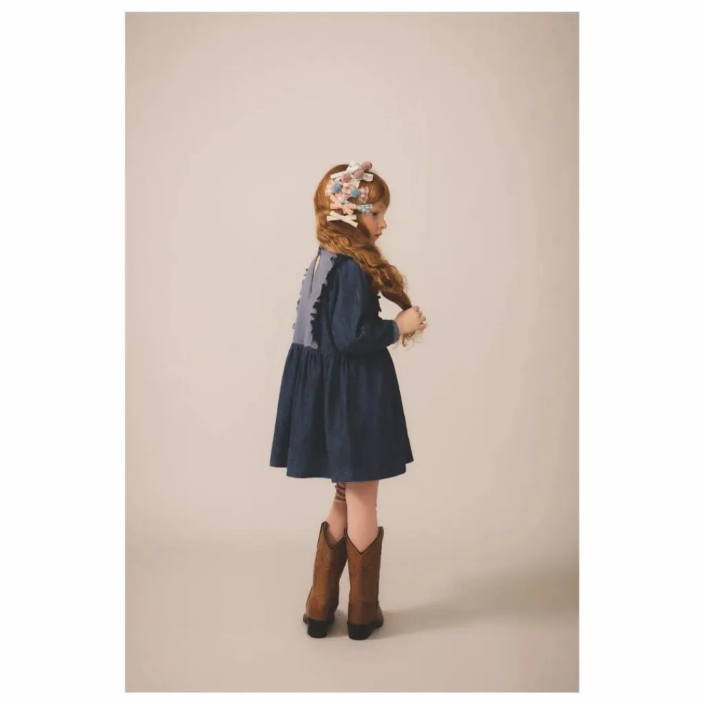 - – Robe de poupée avec manches complètes et empiècement à bavette en tissu à œillets contrastés – Silhouette généreuse avec un bouton recouvert à l’encolure du dos.