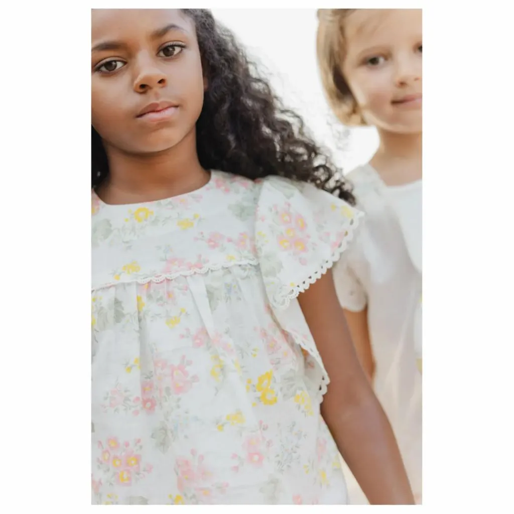 - Cette tunique écru pour fille, ornée d’un imprimé fleuri délicat et de détails en galon croquet, allie douceur et élégance. Légère et confortable, elle est idéale pour les journées estivales, apportant une touche raffinée et poétique à la tenue. CA12032-13