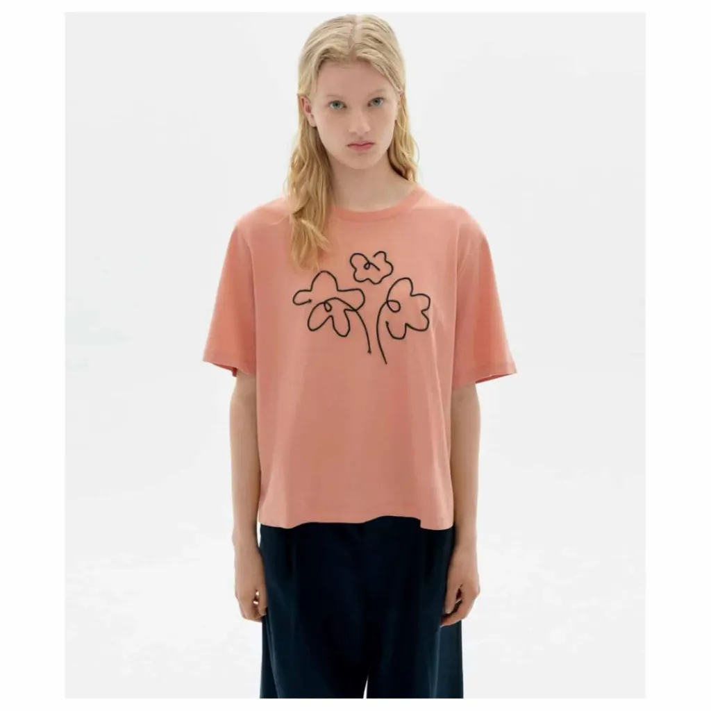- Flower Lucia t-shirt rose brodé à la main en coton biologique Col rond Manches courtes Coupe régulière Tissu : coton biologique, poids 140 g/m² (épaisseur moyenne) Détails du vêtement : motif brodé à la main Longueur du vêtement : normal