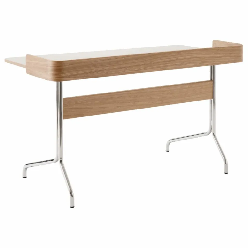 - 1 bureau, 1 plateau de table stratifié avec du linoléum, Bords plaqués, Piètement chromé
