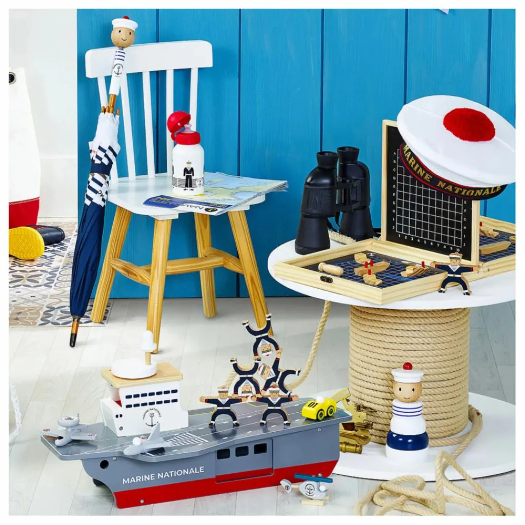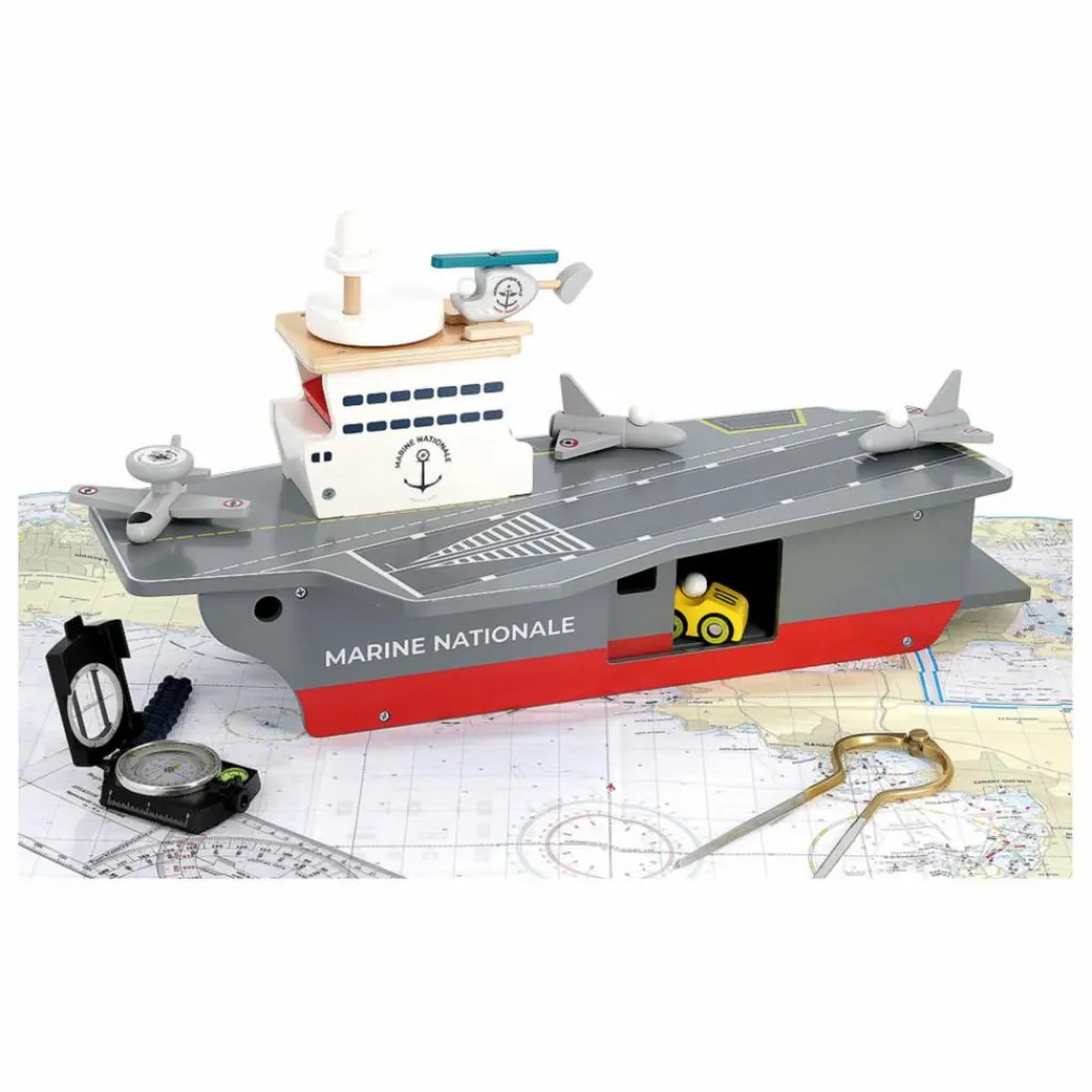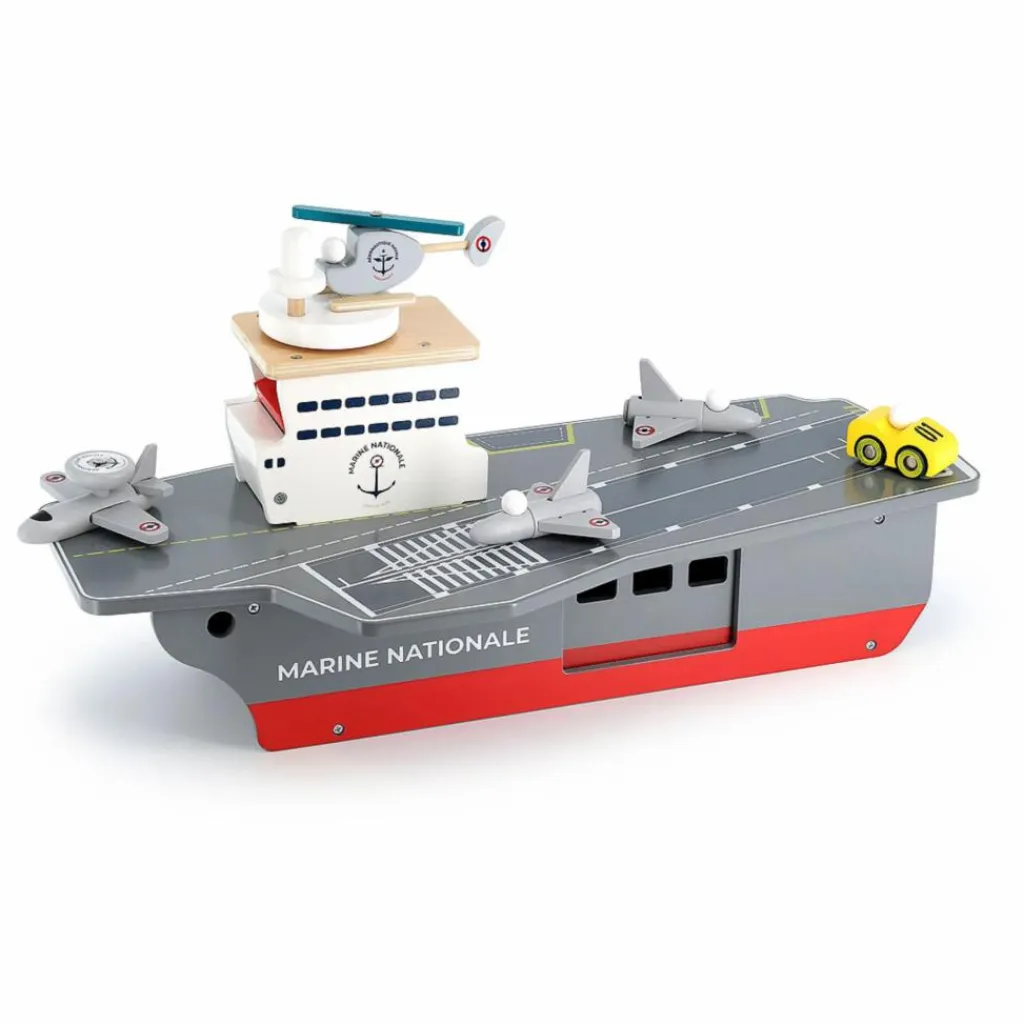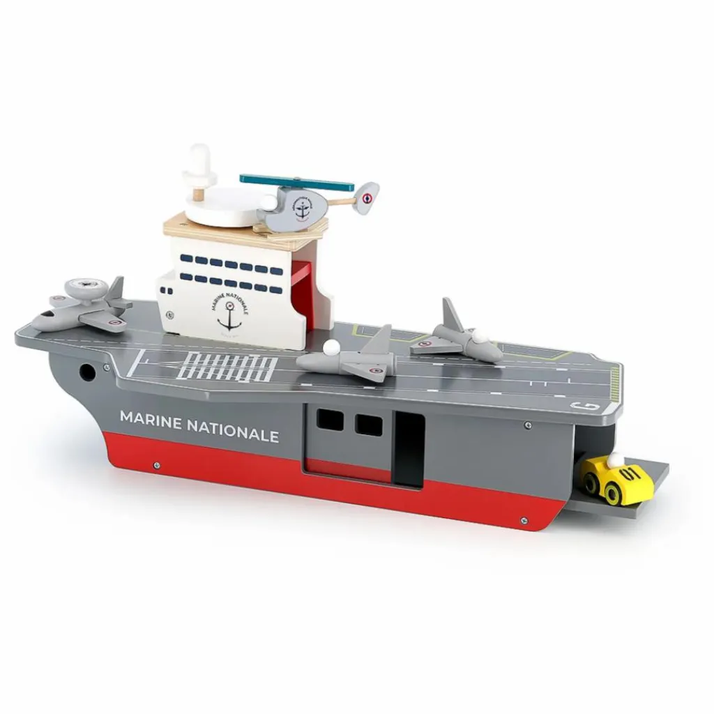 Ce porte-avions, doté d’un ascenseur, de portes coulissantes et basculantes est le jouet idéal pour les petits matelots !