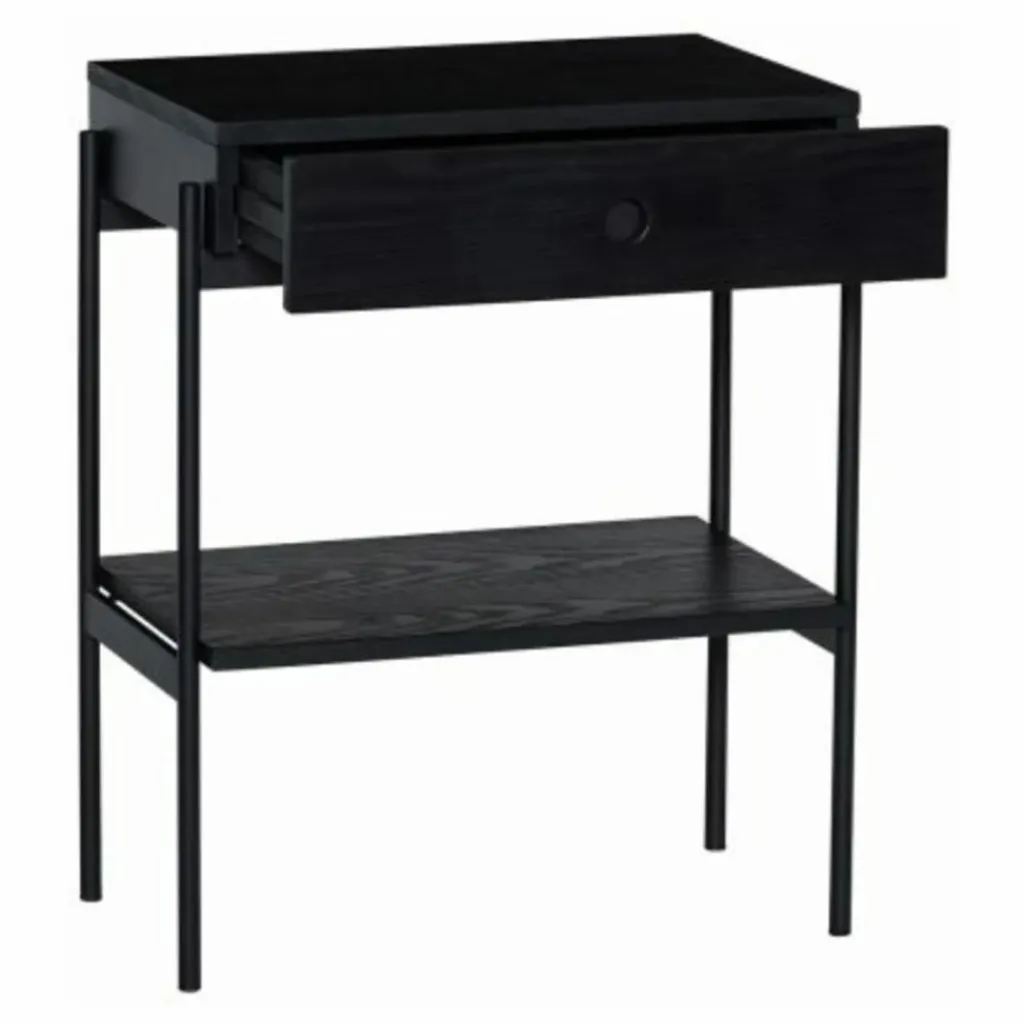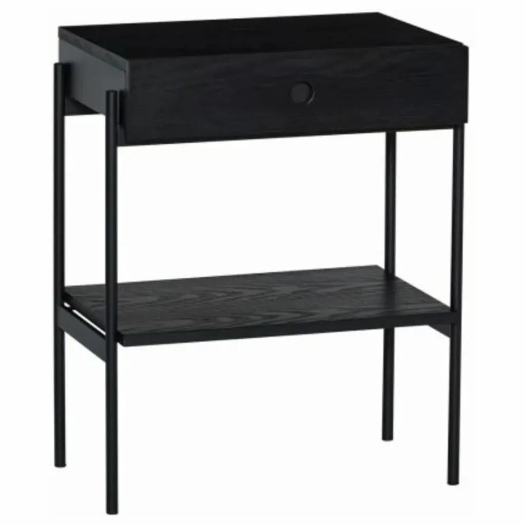- Découvrez notre Table de Chevet Noir, une création qui allie élégance et fonctionnalité. Revêtue d’une finition noire chic, cette table est fabriquée en placage de frêne et agrémentée de détails métalliques, ajoutant une note de sophistication à votre chambre. Elle est équipée d’un tiroir utile, parfait pour conserver à portée de main vos indispensables de nuit et ainsi garder votre espace bien organisé. Sa surface supérieure offre l’espace idéal pour poser un livre ou une lampe, facilitant vos moments de lecture nocturne. Apportez une touche d’élégance fonctionnelle à votre chambre avec notre Table de Chevet Noir, transformant ainsi votre routine du soir.