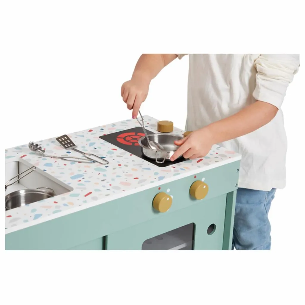 À vos toques les petits cuistots, nous avons un repas à préparer ! Votre enfant pourra s’amuser et s’inventer de multiples histoires grâces aux nombreuses fonctionnalités et accessoires qu’offre cette cuisine.