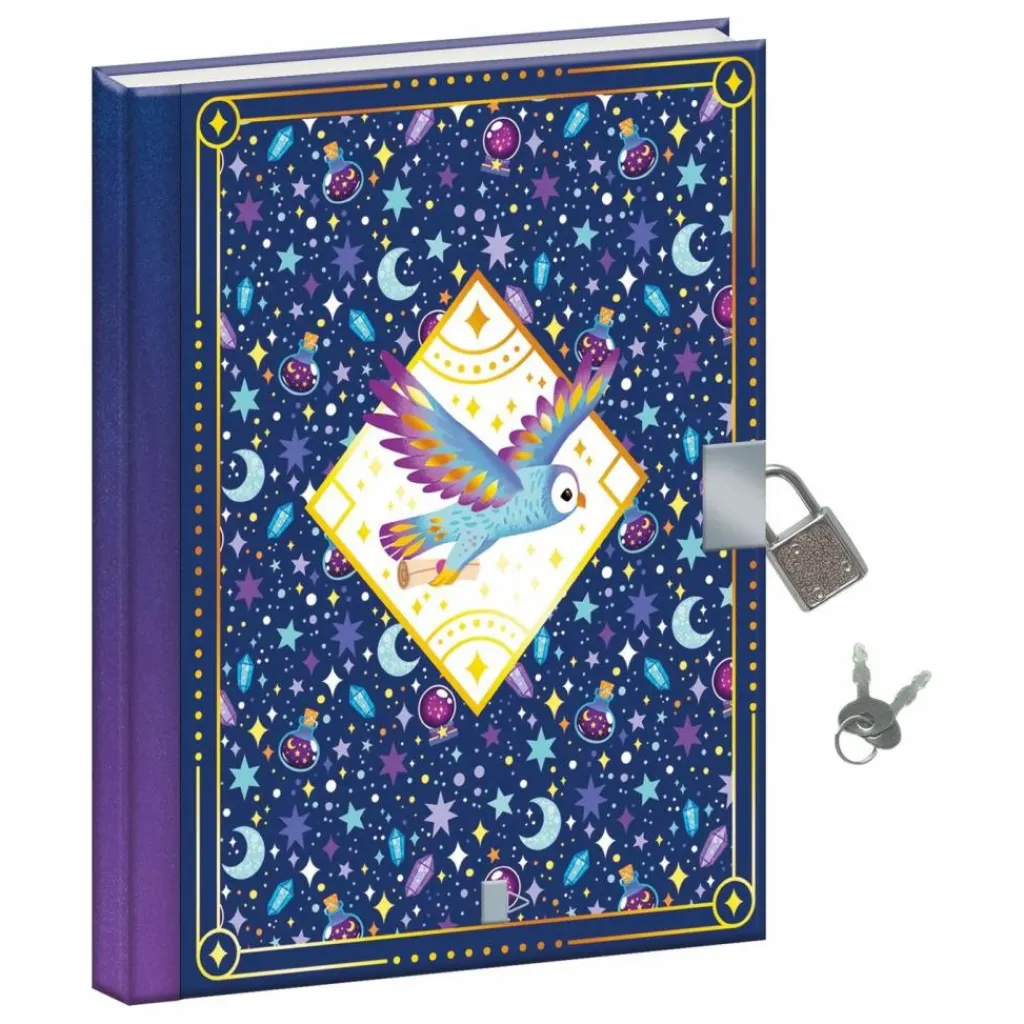 - Tout véritable apprenti sorcier se doit d’avoir son grimoire secret ! Ce coffret créatif se compose d’un grinoire secret de 96 pages avec 1 cadeans et son jeu de 2 clés. Un joli stylo à encre violette en forme de plume et une planche de décalcomanies complète le coffret pour personnaliser son carnet. Cette activité permet de développer sa créativité et son imagination et est idéale pour les enfants à partir de 7 ans.