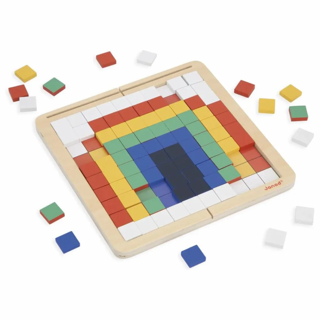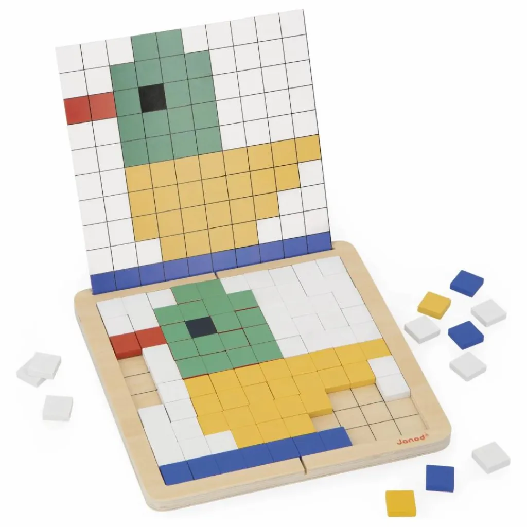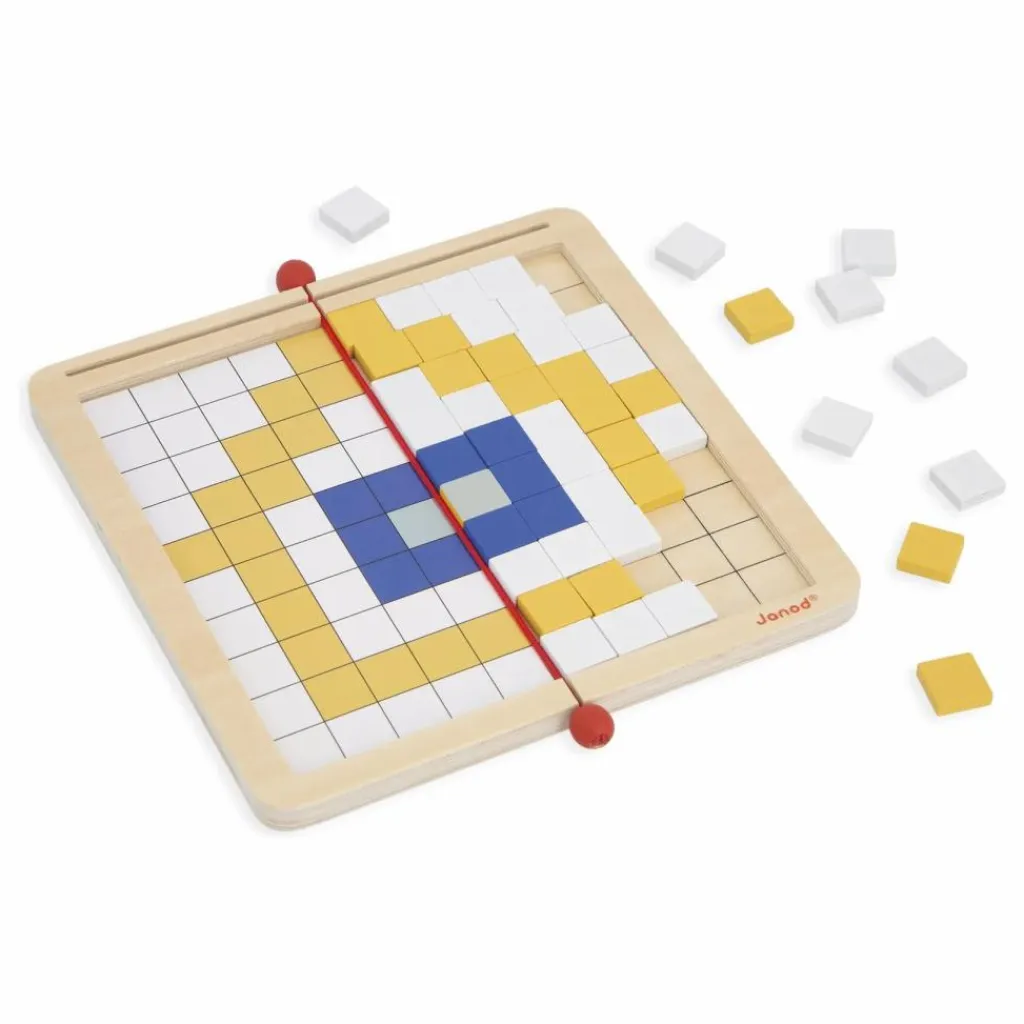 - C’est une grenouille qui apparait ! Ce jeu éducatif de codage offre 4 modes de jeu différents : 1. Superposition : L’enfant dispose les pions par-dessus la carte sur le plateau. 2. Reproduction : L’enfant positionne les pions sur le plateau d’après la carte 3. Symétrie : L’enfant reproduit par symétrie le motif de la demi-carte. 4. Codage : Grâce aux chiffres et couleurs indiquées sur la carte, l’enfant découvre l’illustration cachée. En atelier autonome ou en duo, il favorise le développement de la concentration et de la maitrise des chiffres. Composé d’un plateau en bois, 200 jetons en bois, 10 cartes modèles. Un sac de rangement est inclus. Jeu éducatif en bois et carton FSCTM pour les enfants à partir de 5 ans.