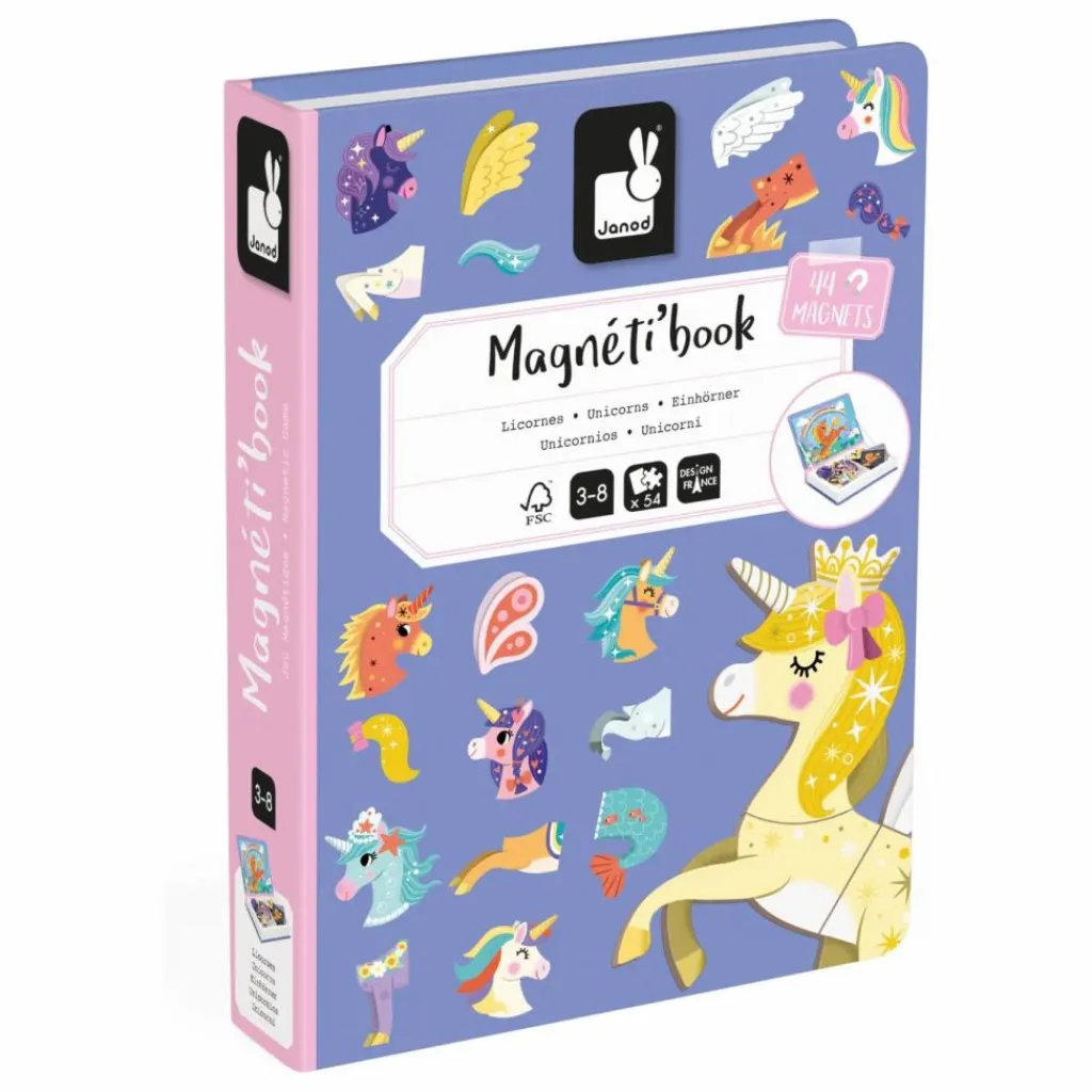 Plongez dans la féérie avec le Magnéti’book des licornes ! Ce jeu magnétique, adapté aux enfants dès 3 ans, stimule leur imagination et leur créativité. Avec ses 44 pièces aimantées et ses 10 modèles, chaque licorne trouve sa place dans un décor fantastique. Vos enfants pourront suivre les modèles ou créer leurs propres histoires en combinant les aimants. Du ciel étoilé aux prairies enchantées, les possibilités sont infinies. Faciles à manipuler, les aimants favorisent également la motricité fine des petits. Transportable et pratique, ce livre magnétique accompagne vos enfants partout, laissant libre cours à leur imagination débordante. Un jeu magnétique enchanteur pour compléter la collection des Magnéti’book Janod !