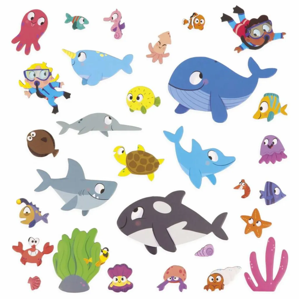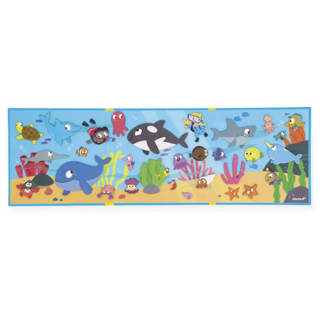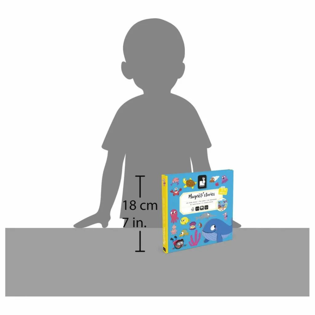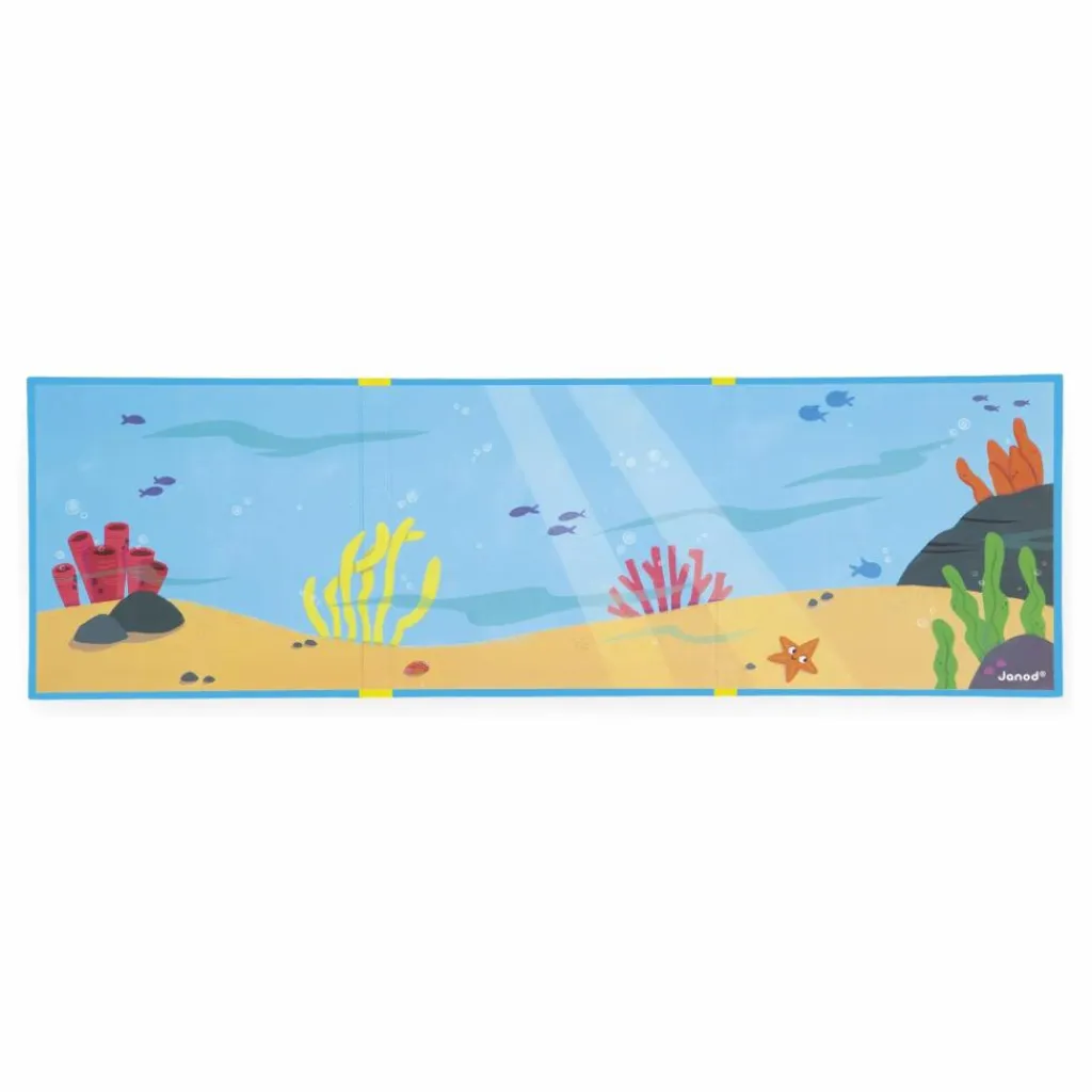 - Bienvenue dans le monde sous-marin ! Plongez à la découverte des habitants des fonds marins, du dauphin farceur à l’étoile curieuse, tous attendent votre enfant pour vivre de nouvelles aventures ! Grâce au grand décor magnétique et à ses 30 magnets représentants poissons et coquillages, votre enfant pourra imaginer pleins d’histoires dans l’univers aquatique. Jouet magnétique en carton FSCTM. Jouet pour les enfants à partir de 3 ans..