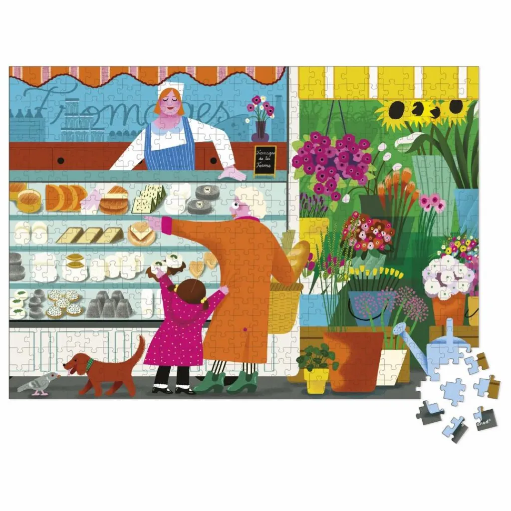 - Le poissonnier qui crie, l’odeur des viennoiseries et du pain chaud, les pigeons sur la grande place, tant d’images qui évoquent des souvenirs d’enfance à déambuler le marché ! Ce magnifique puzzle composé de 500 pièces est idéal pour les enfants à partir de 8 ans. Les petites pièces requièrent minutie et dextérité pour arriver à reproduire cette jolie illustration. Seul ou à plusieurs cette activité éducative est parfaite pour développer la concentration et profiter d’un temps calme. Une fois les 500 pièces assemblées, ce superbe puzzle fera également une très belle illustration à encadrer. Fabriqué avec du carton et papier provenant de forêts gérées durablement. Fabriqué en Pologne.