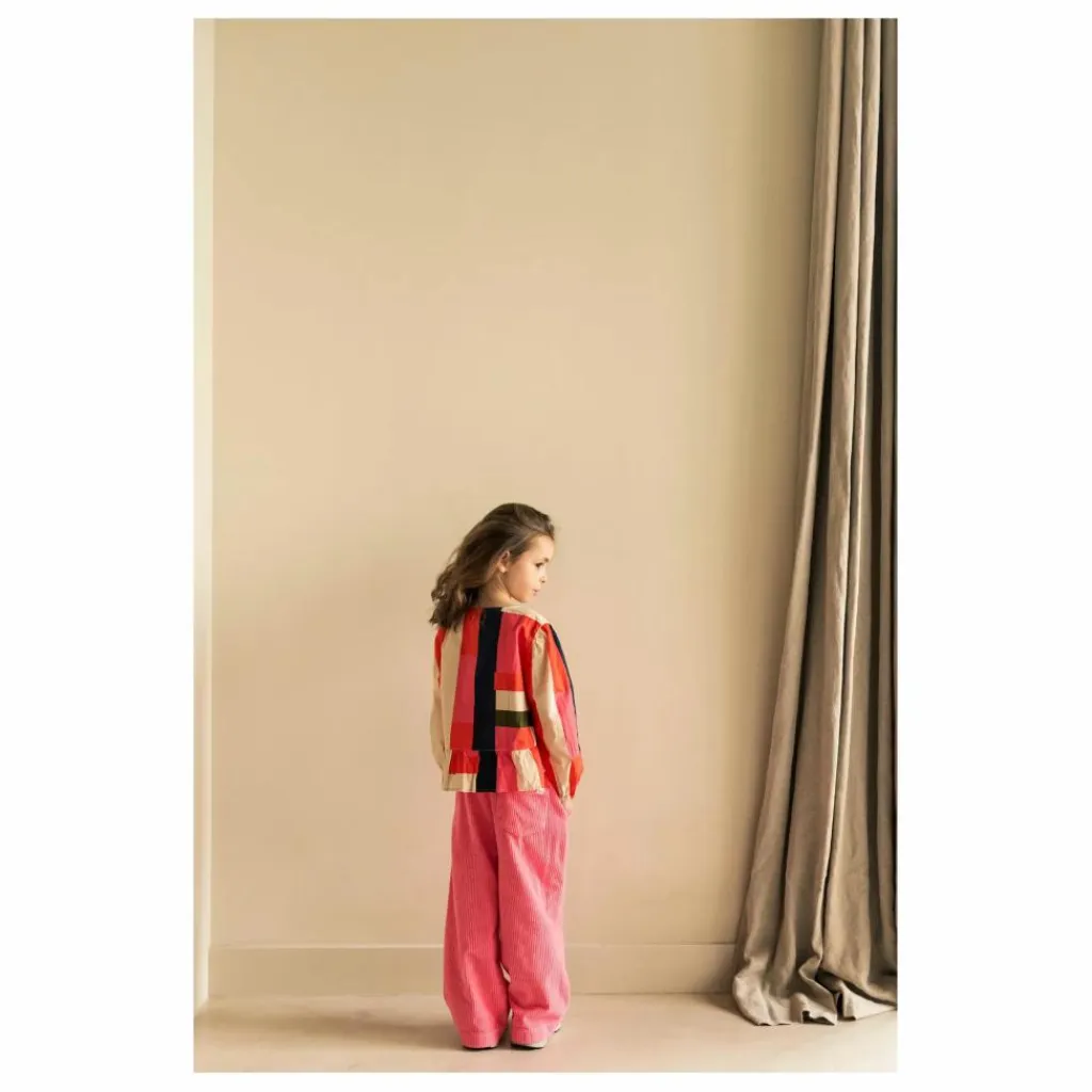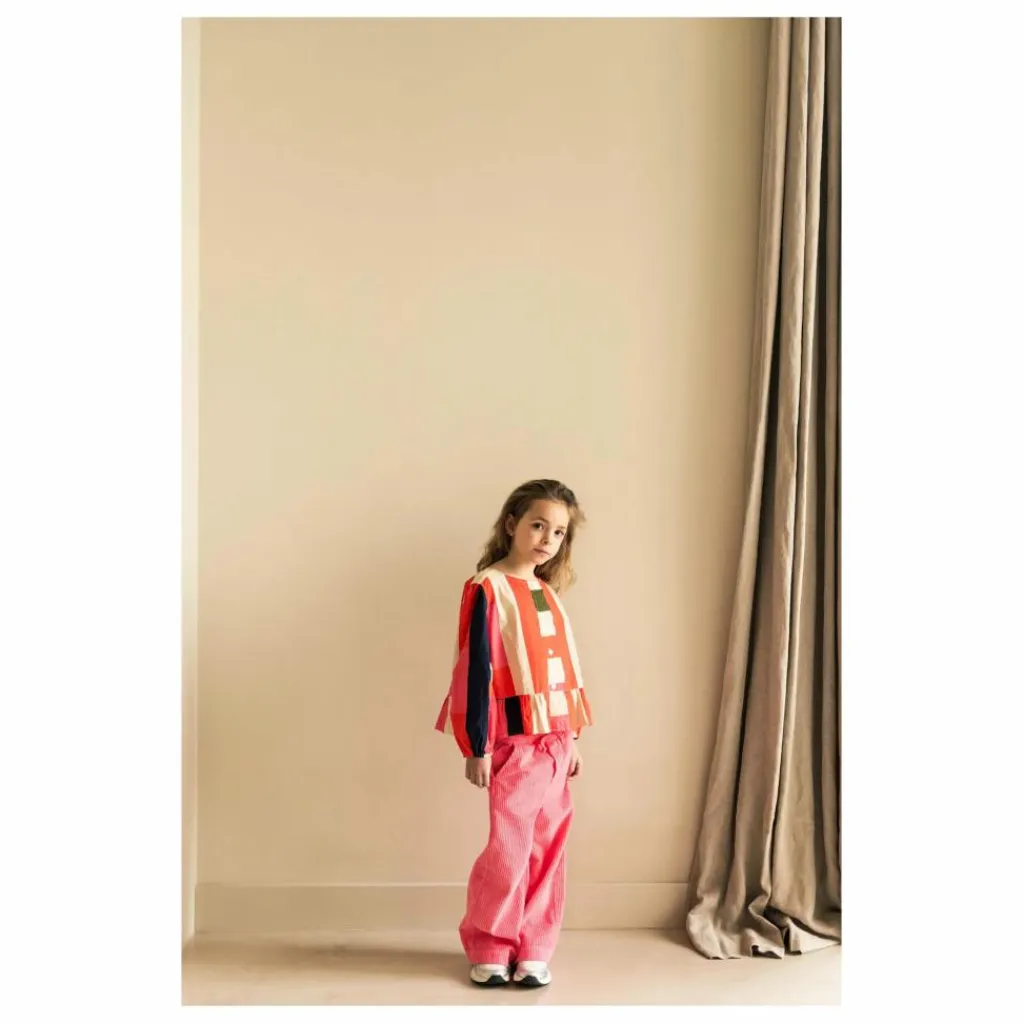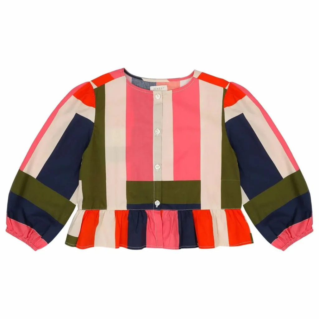 - Cette blouse en popeline de coton imprimée à l’infini présente une coupe courte et des volants à l’ourlet inférieur.