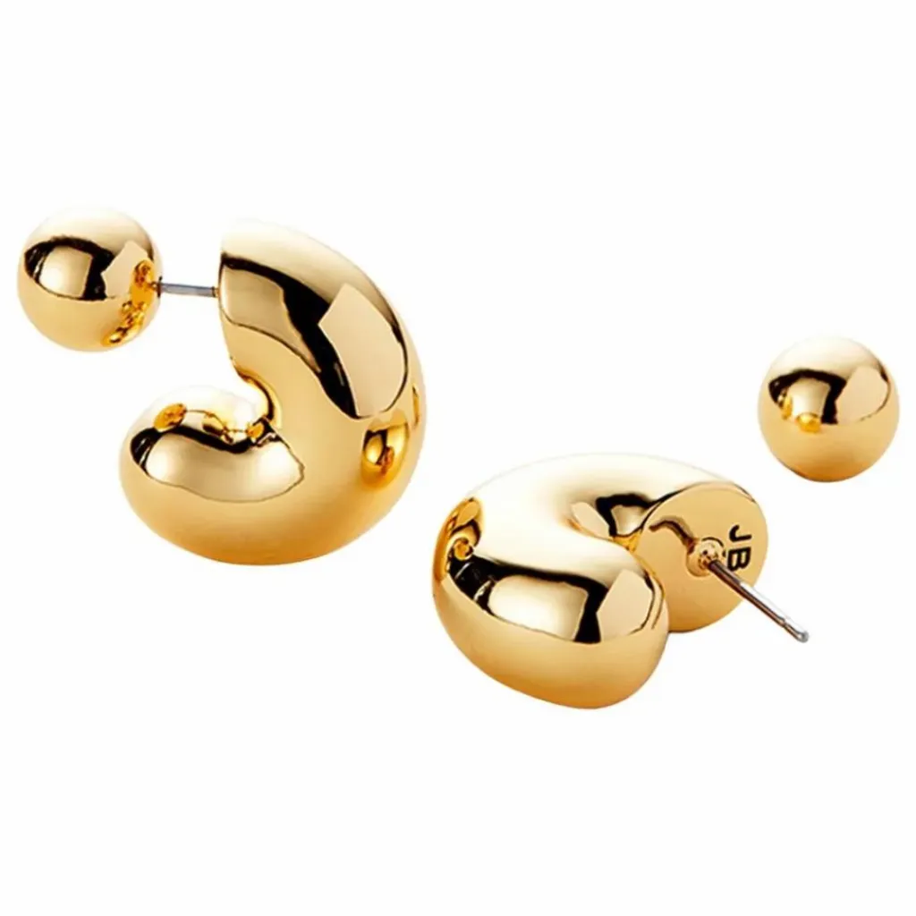 - Un cerceau tubulaire et potelé avec des extrémités arrondies et un support de boule JB personnalisé. Finition en or poli.